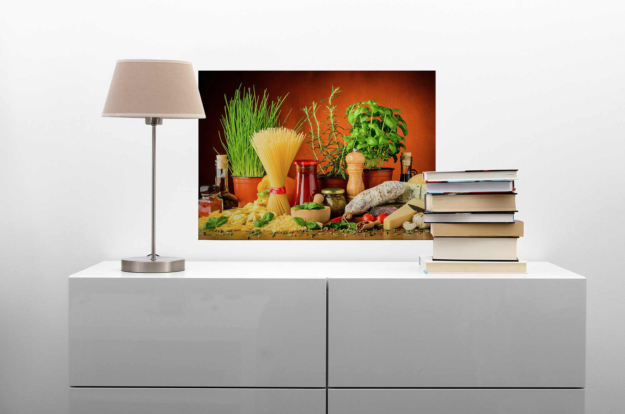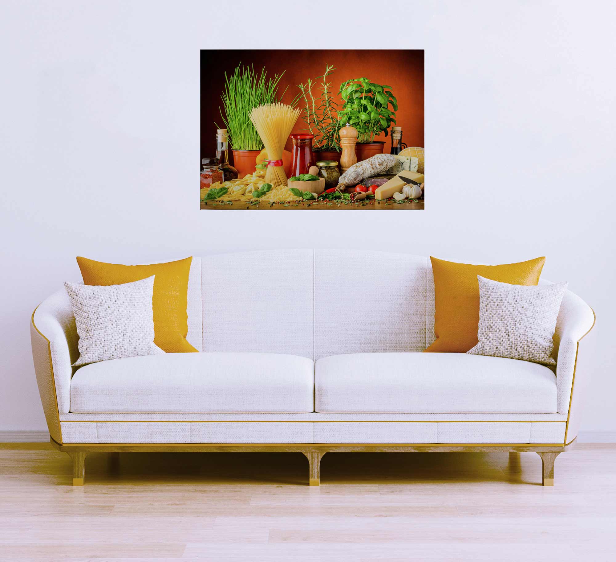 Tadessi Leinwandbild Küche - 50 x 70 cm - M1-No.50294 - Keilrahmen in Orange Gelb