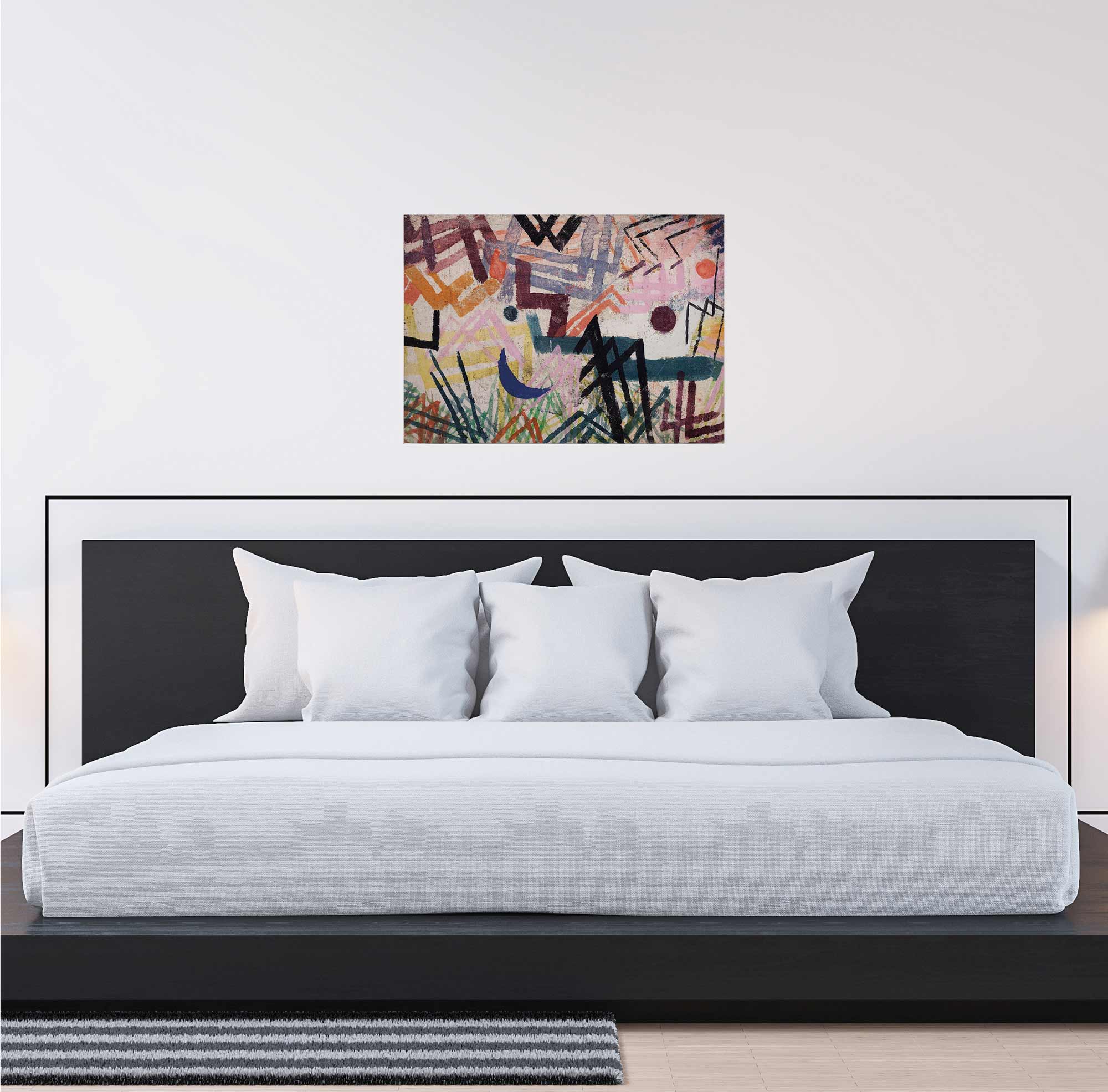 - Unkomplizierte Anbringung: Das fertig bespannte Leinwandbild lässt sich sofort aufhängen. Die Aufhängung ist mit enthalten.
