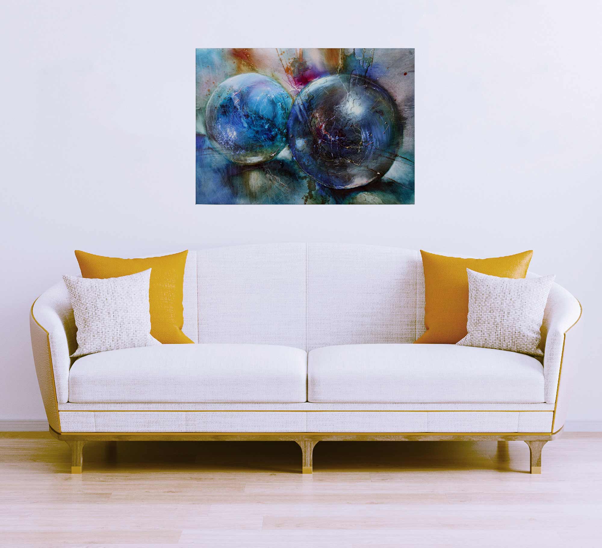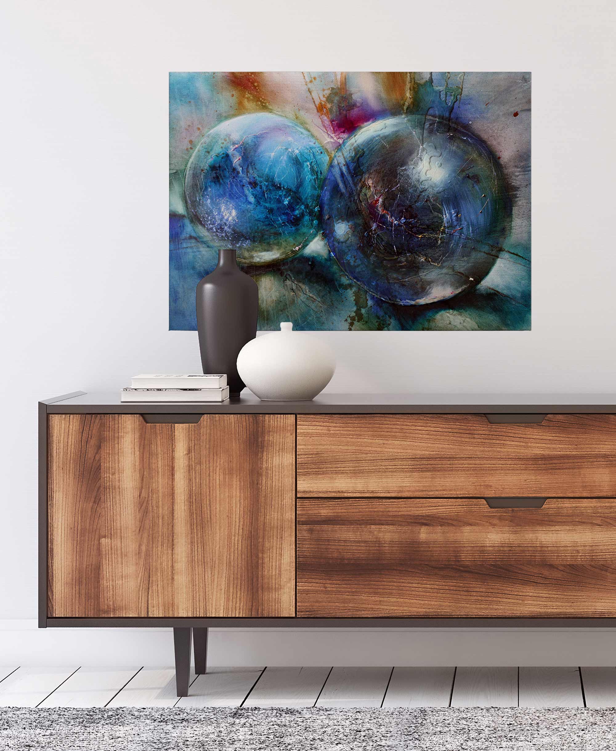 Tadessi Leinwandbild Kugeln Abstrakt - 50 x 70 cm - M1-No.50318 - Keilrahmen in Blau