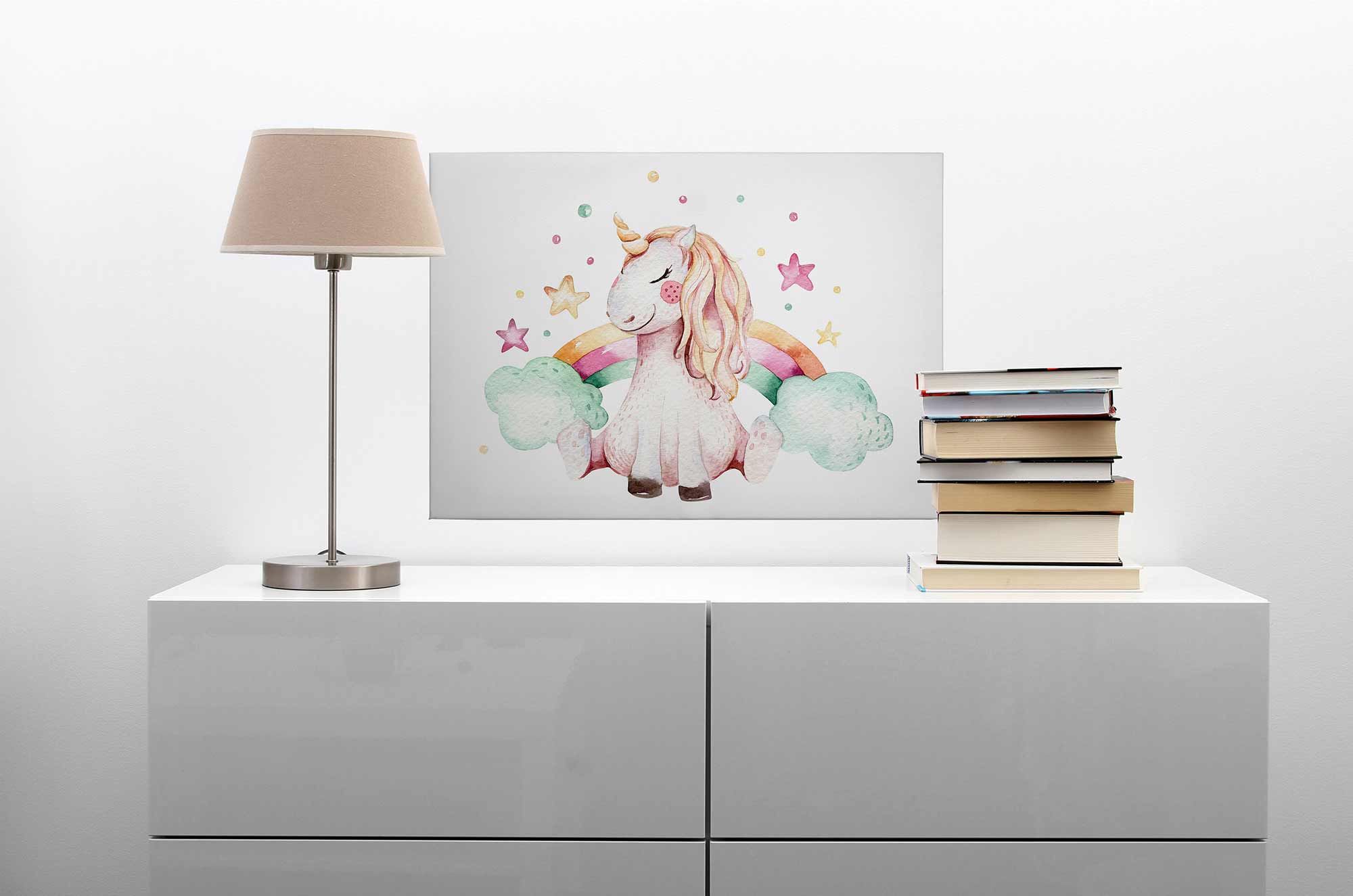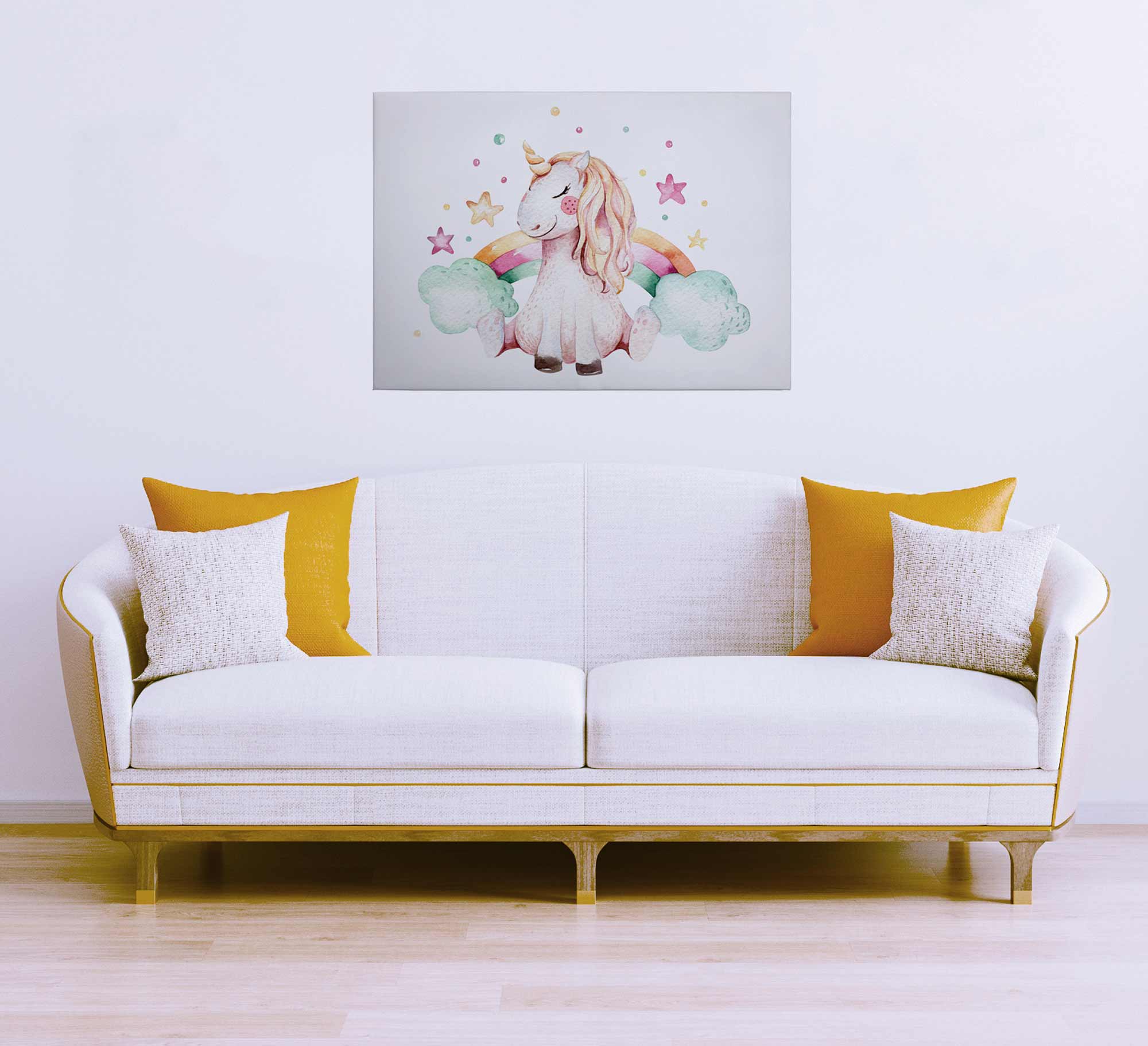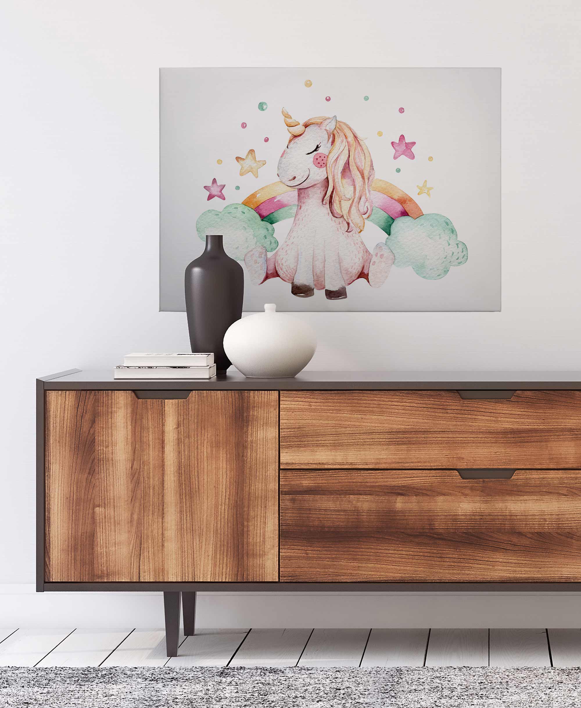 Tadessi Leinwandbild Einhorn Mädchen - 50 x 70 cm - M1-No.50336 - Keilrahmen in Weiß Rosa
