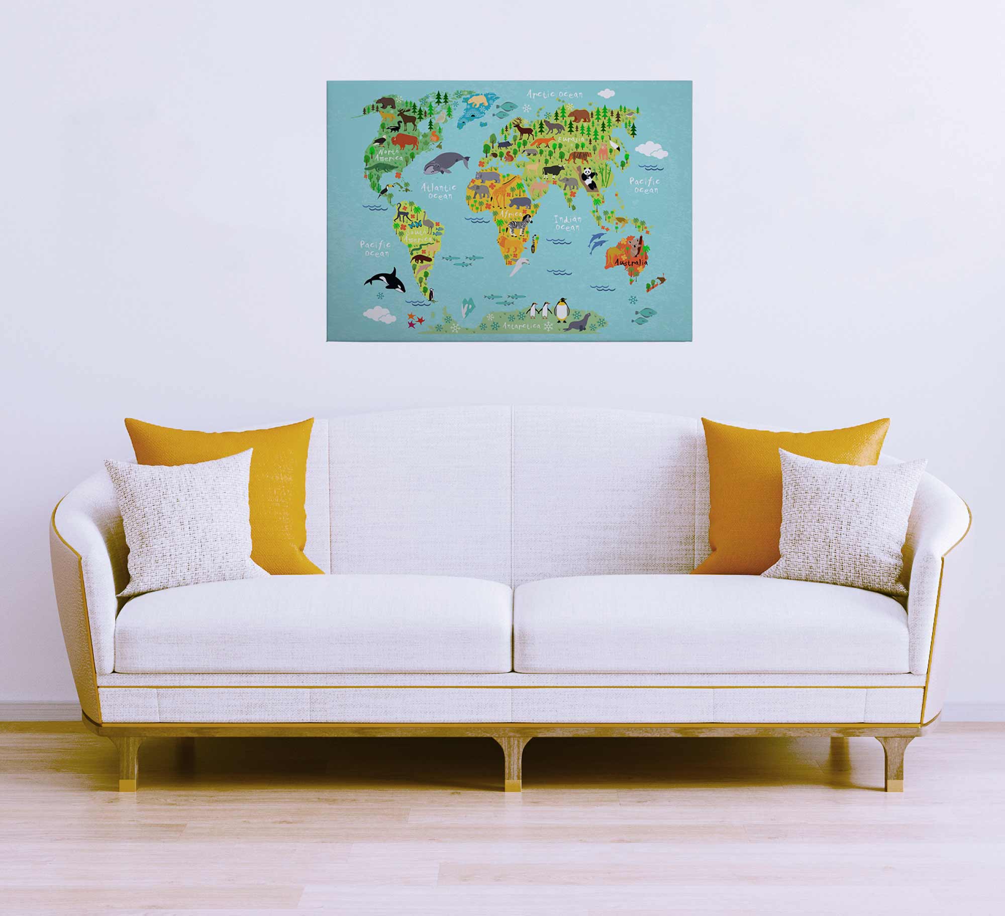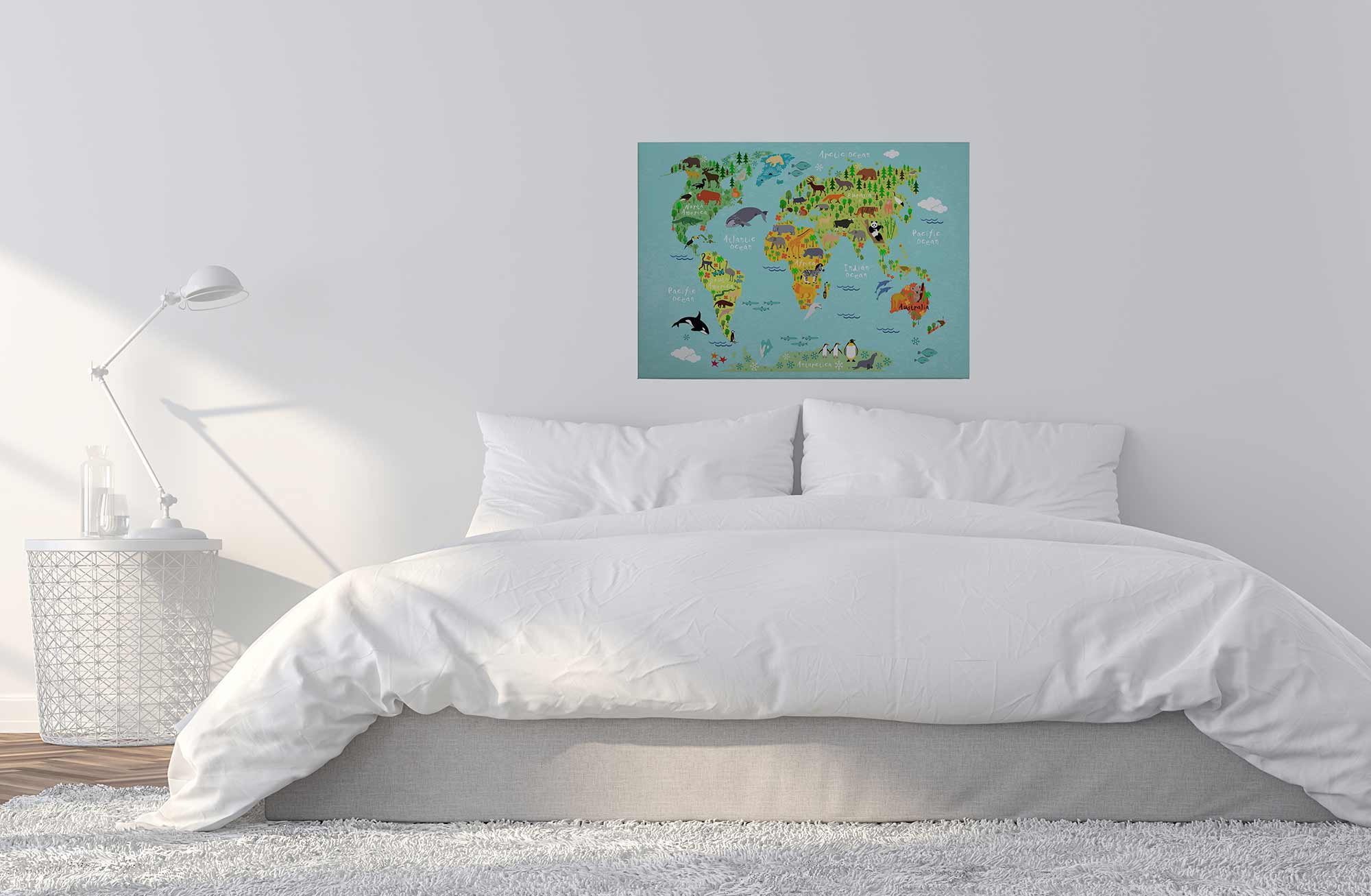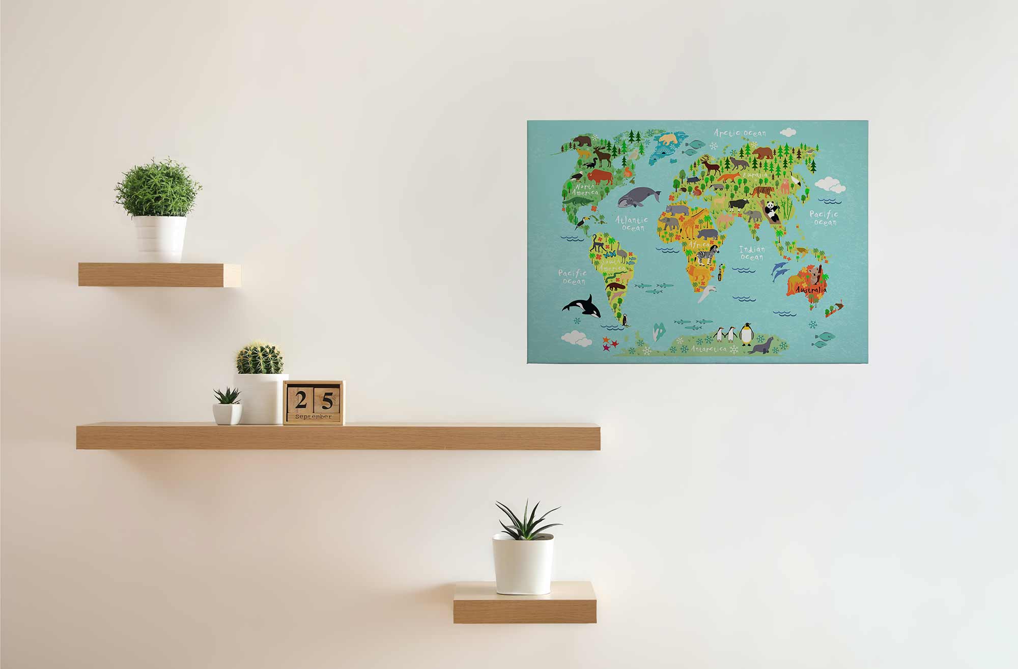 Tadessi Leinwandbild Weltkarte - 50 x 70 cm - M1-No.50349 - Keilrahmen in Blau Grün