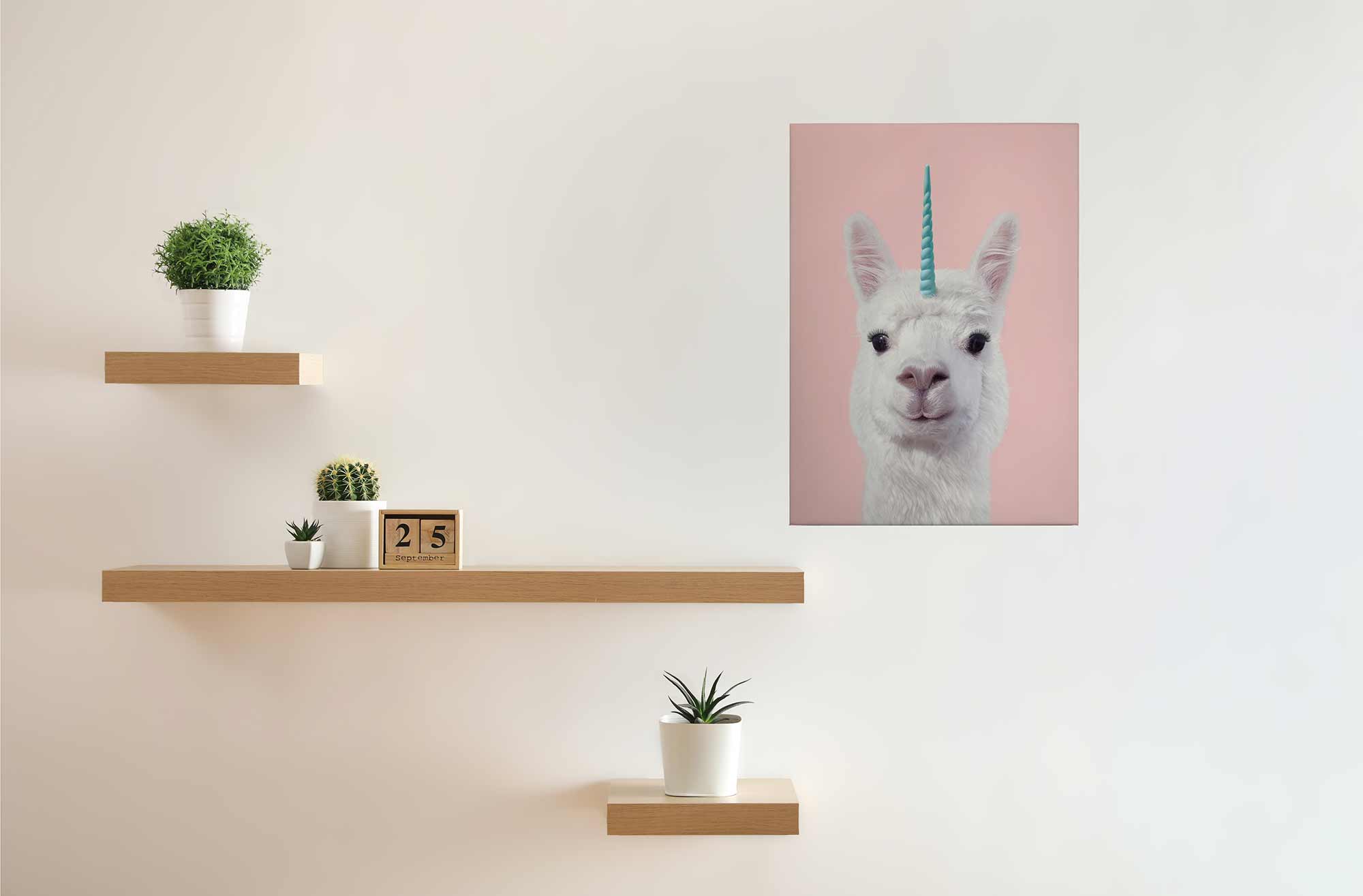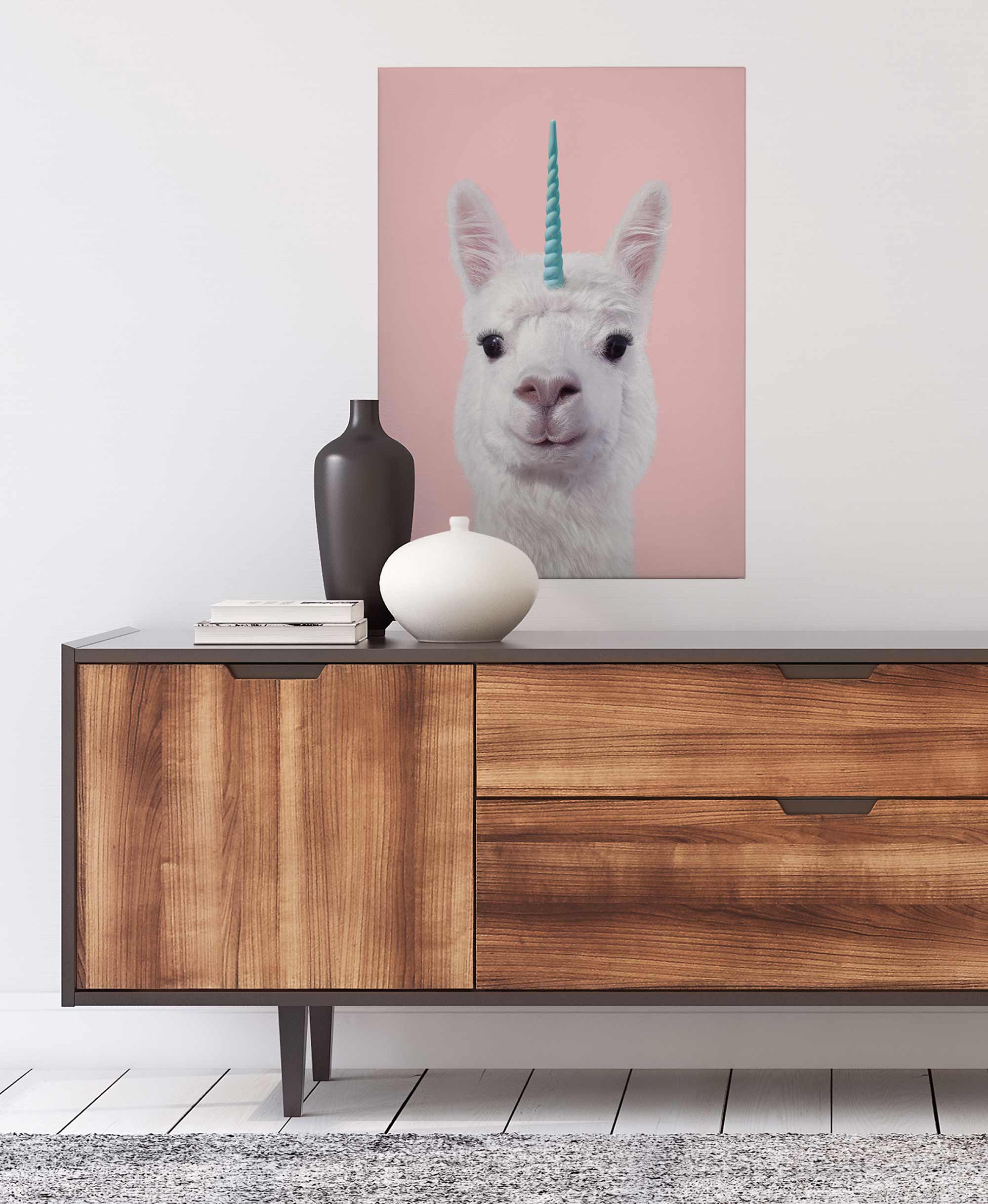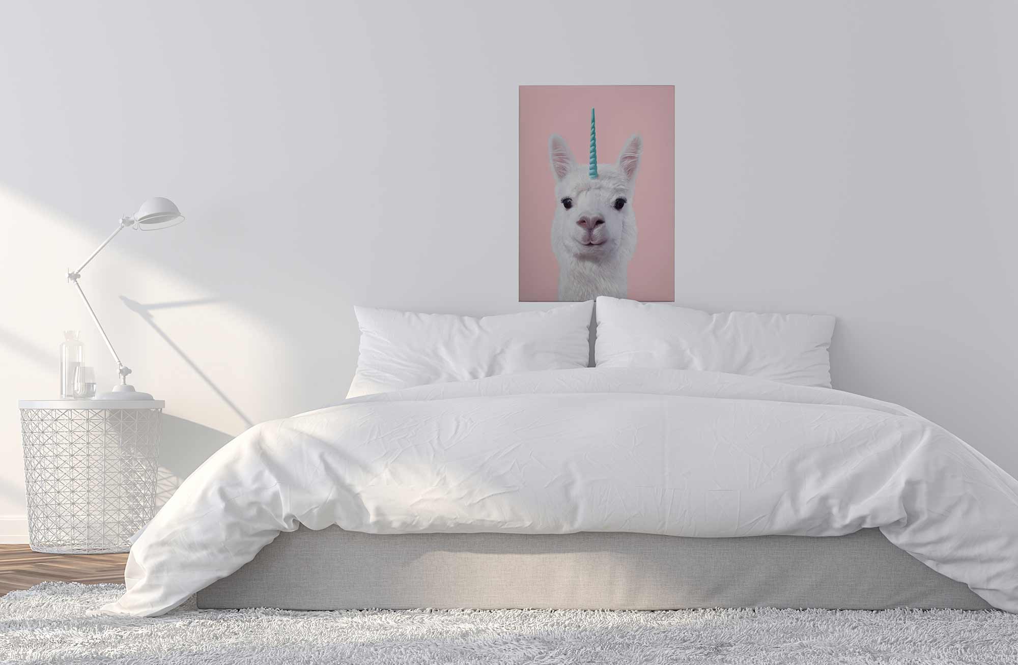 Tadessi Leinwandbild Fantasy Alpaka und Einhorn - 70 x 50 cm - M1-No.50419 - Keilrahmen in Rosa Weiß