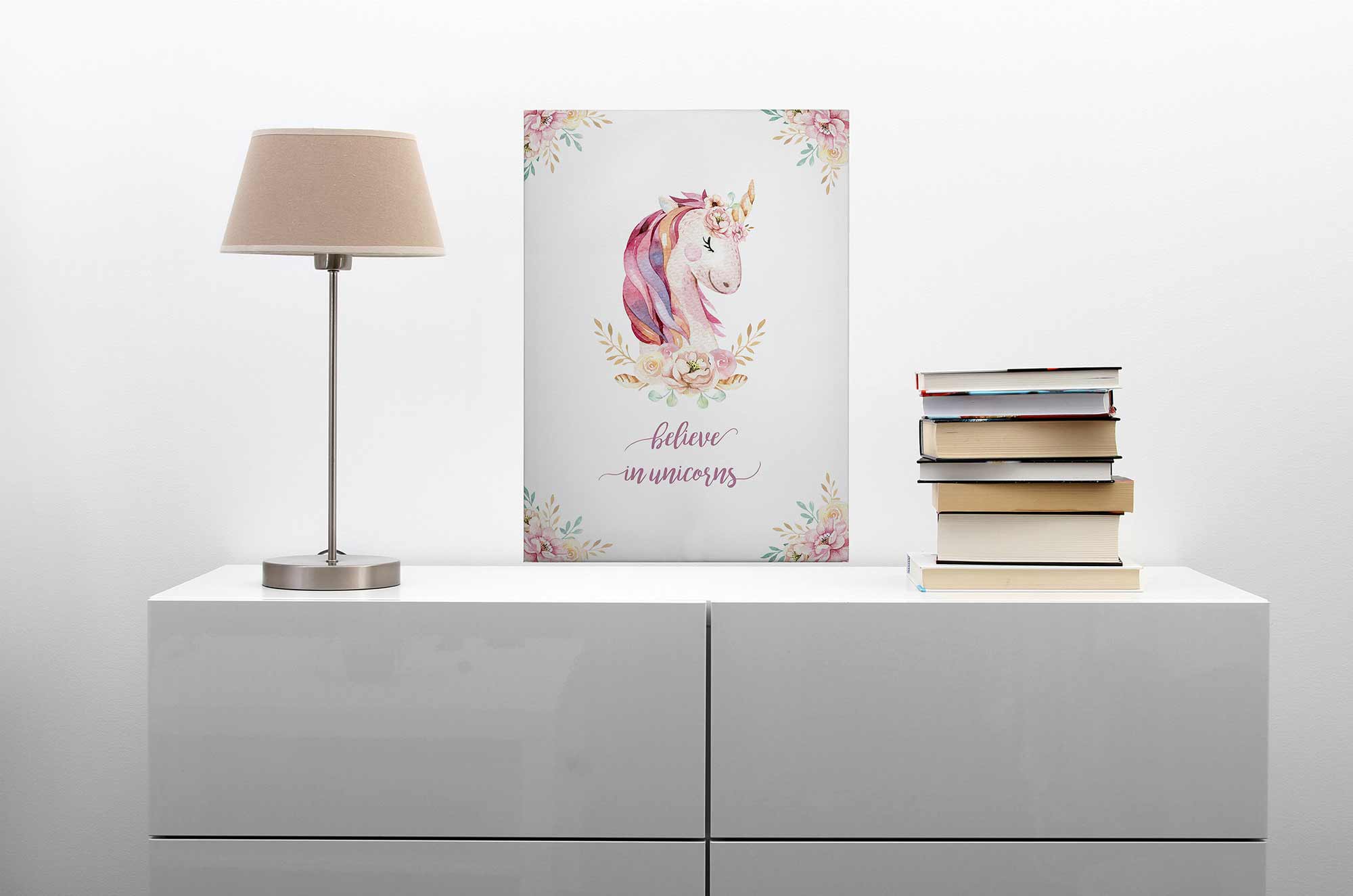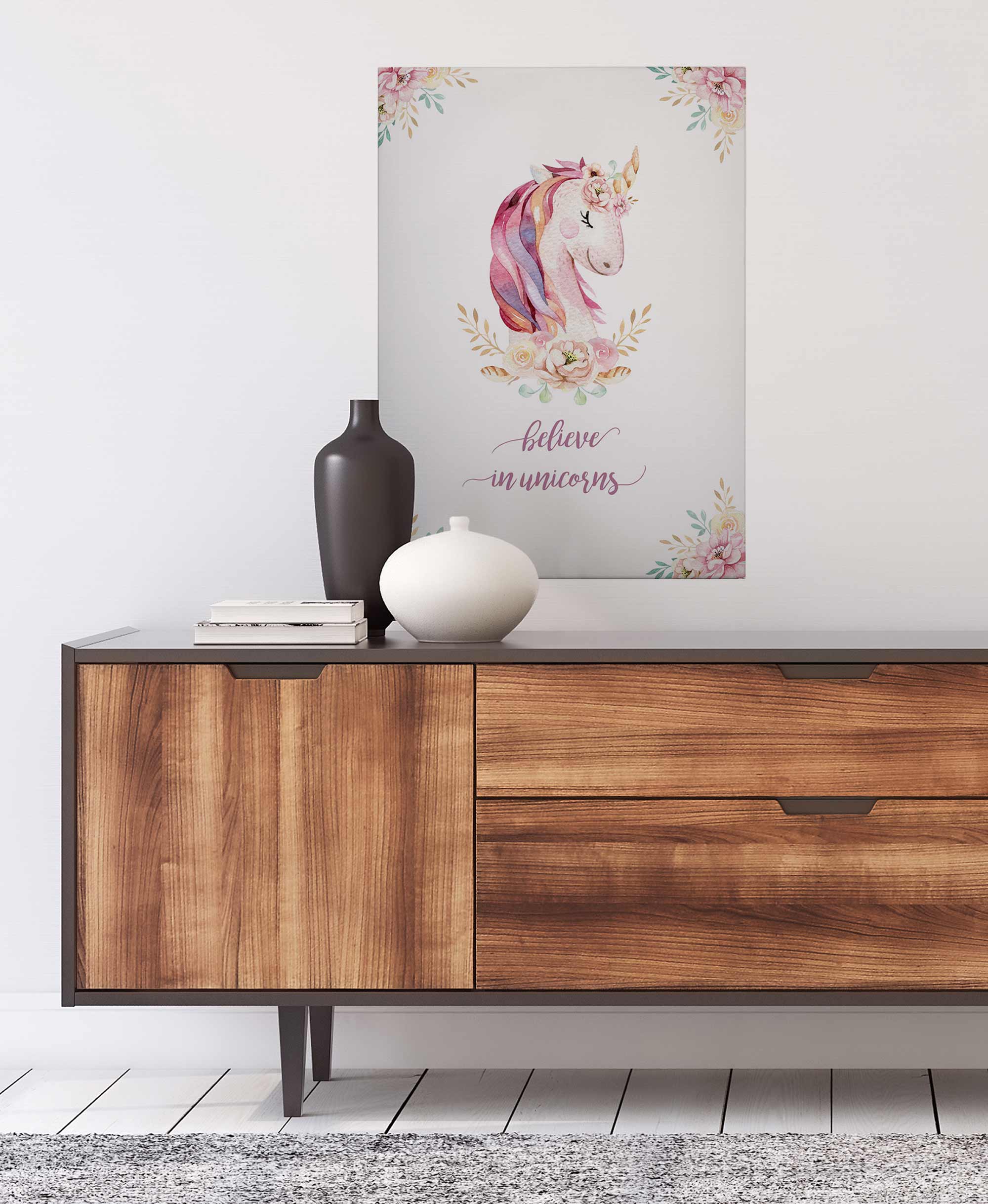 Tadessi Leinwandbild Einhorn - 70 x 50 cm - M1-No.50428 - Keilrahmen in Rosa Weiß