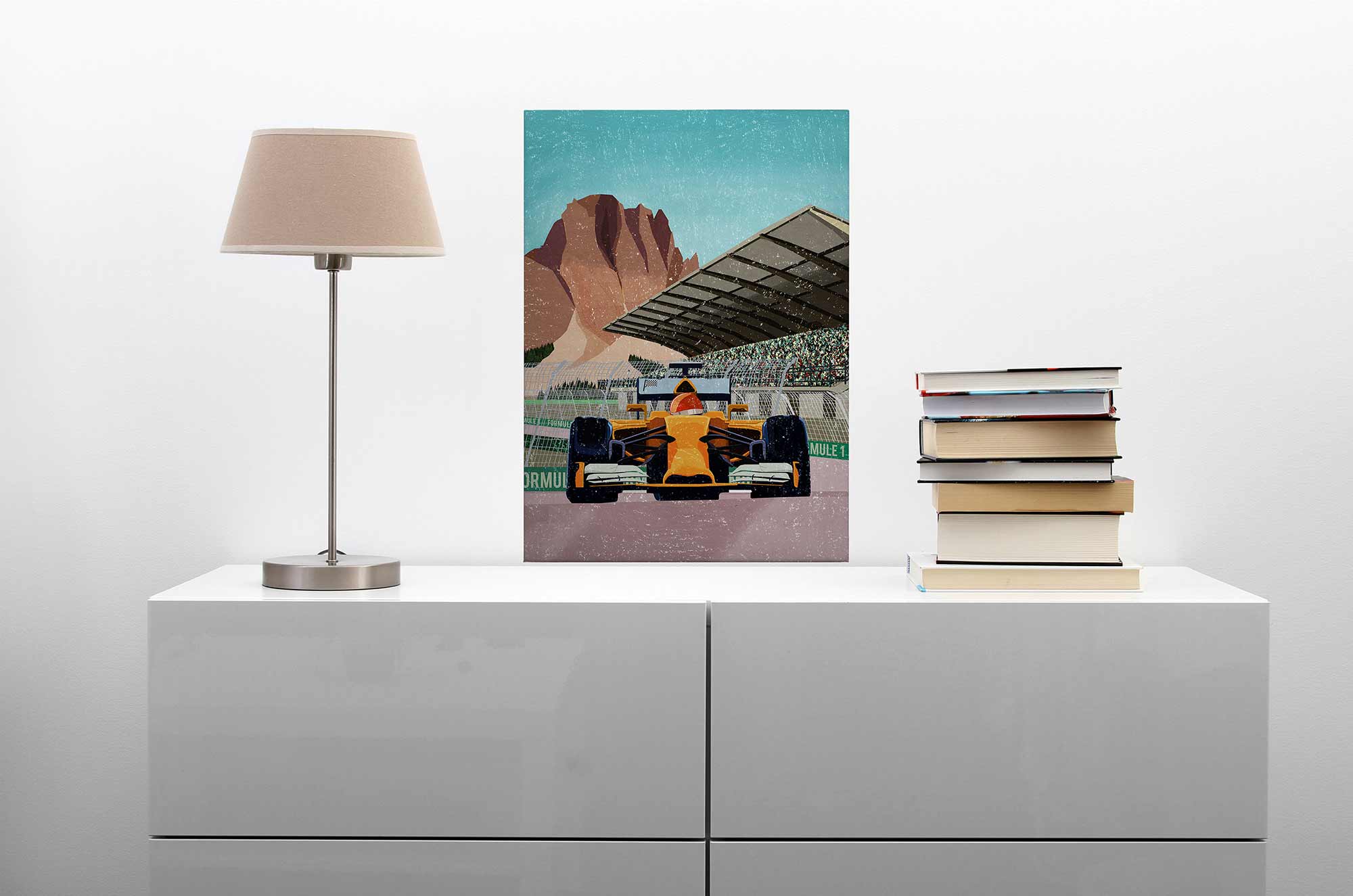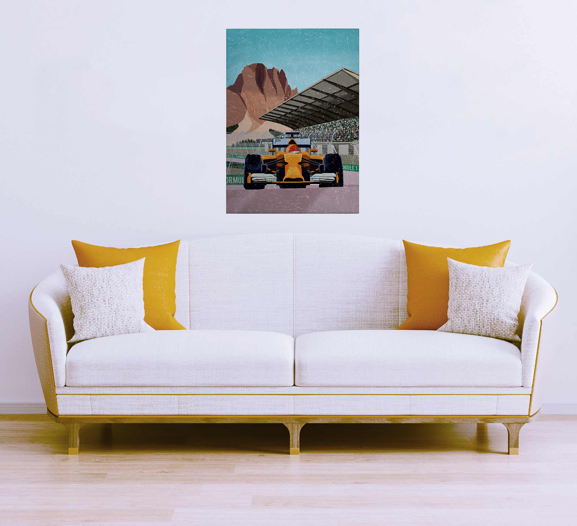 Tadessi Leinwandbild Rennwagen Fahrzeuge - 70 x 50 cm - M1-No.50442 - Keilrahmen in Orange