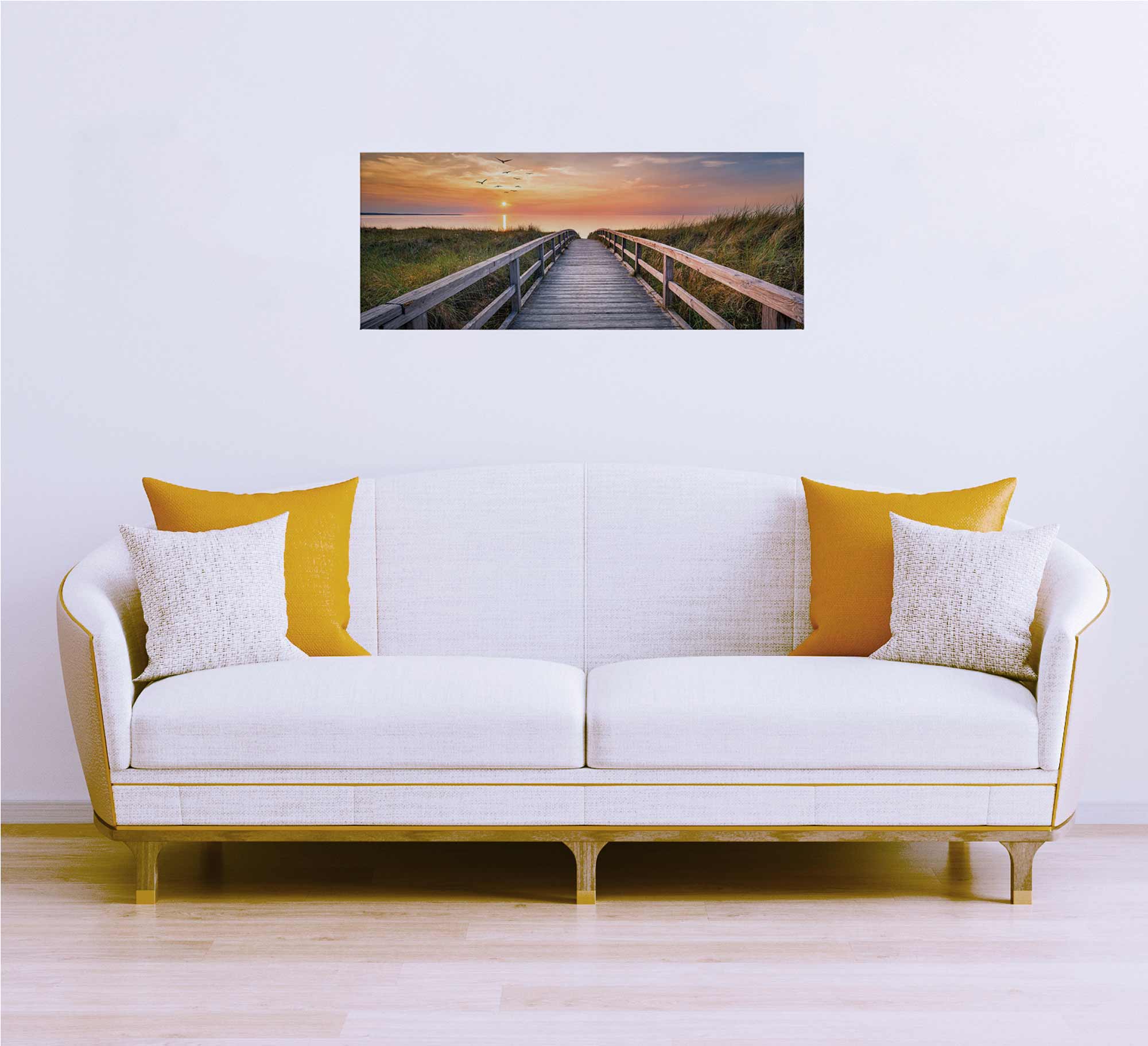 - Unkomplizierte Anbringung: Das fertig bespannte Leinwandbild lässt sich sofort aufhängen. Die Aufhängung ist mit enthalten.