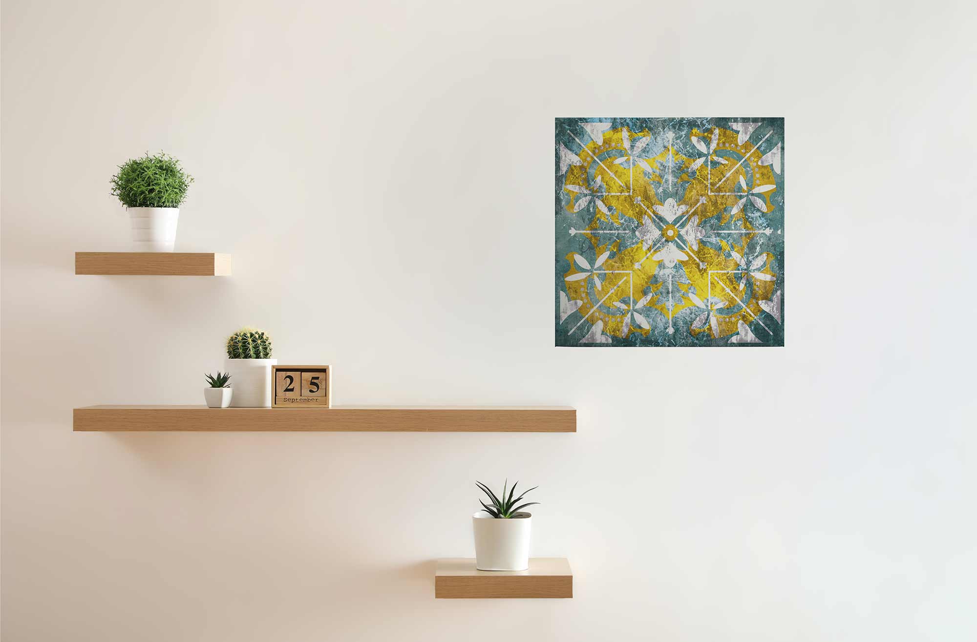 Die moderne Druckfarbe ist für den Innenraum lichtbeständig und farbstabil. Direkte, dauerhafte Sonneneinstrahlung solltest du dennoch vermeiden, um die Lebensdauer der Farben zu maximieren.