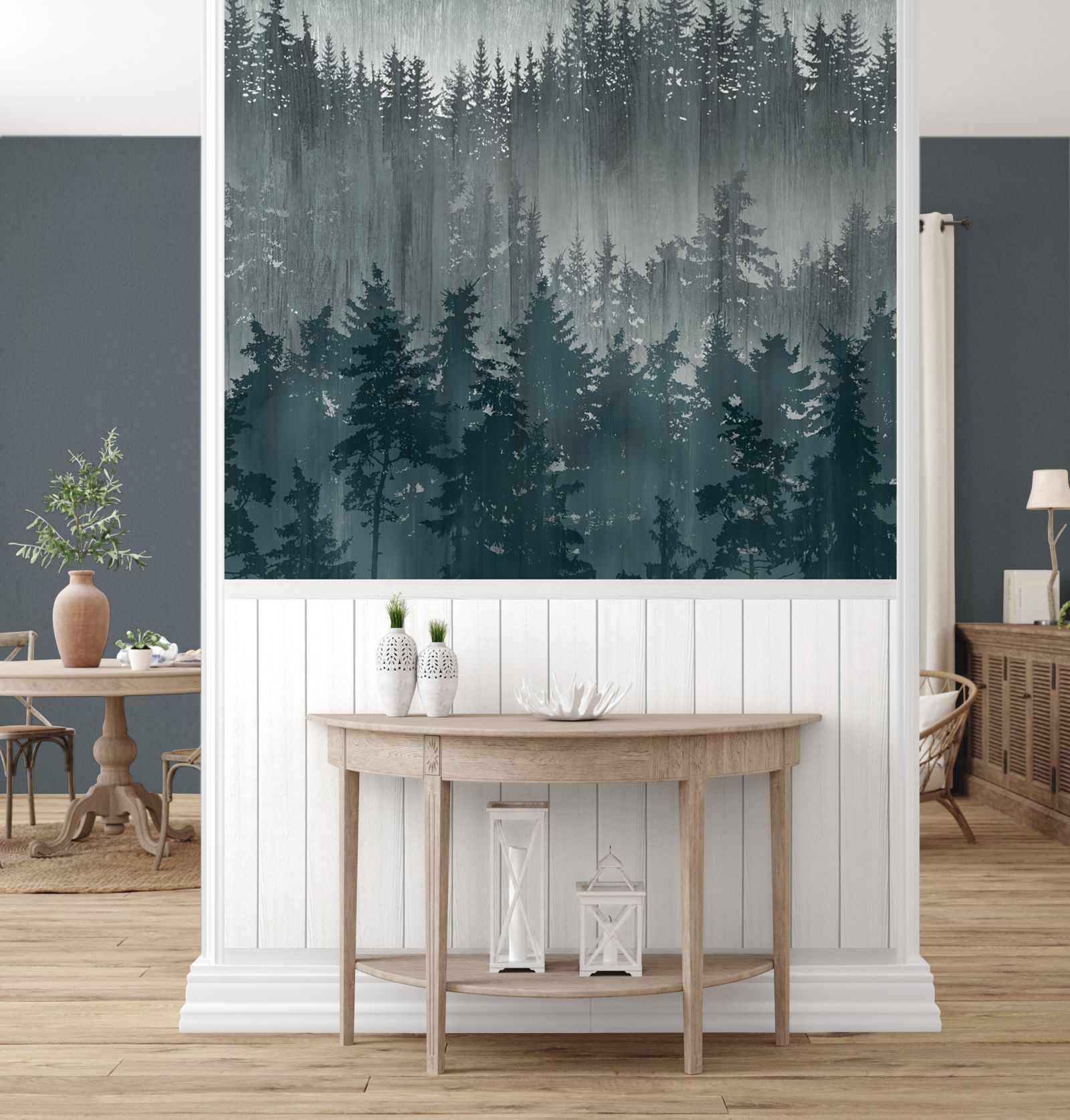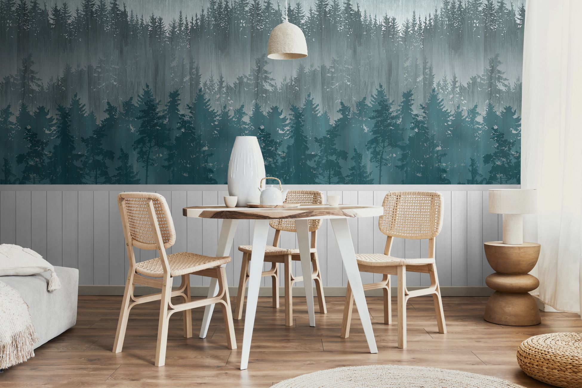 Fototapete Wandpaneele M1-No.11696 | Vliestapete Wald | Weiß | Blau | Wohnzimmer | Schlafzimmer