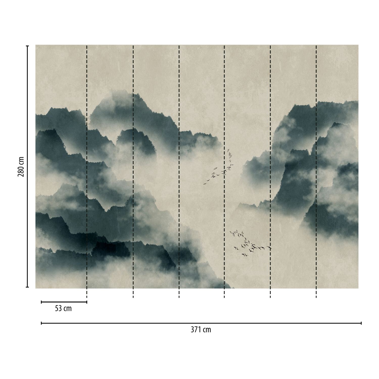 Tadessi Fototapete Landschaft M1-No.10278 Digitaldruck Tapete Blau Beige - Vögel Wald Nebel