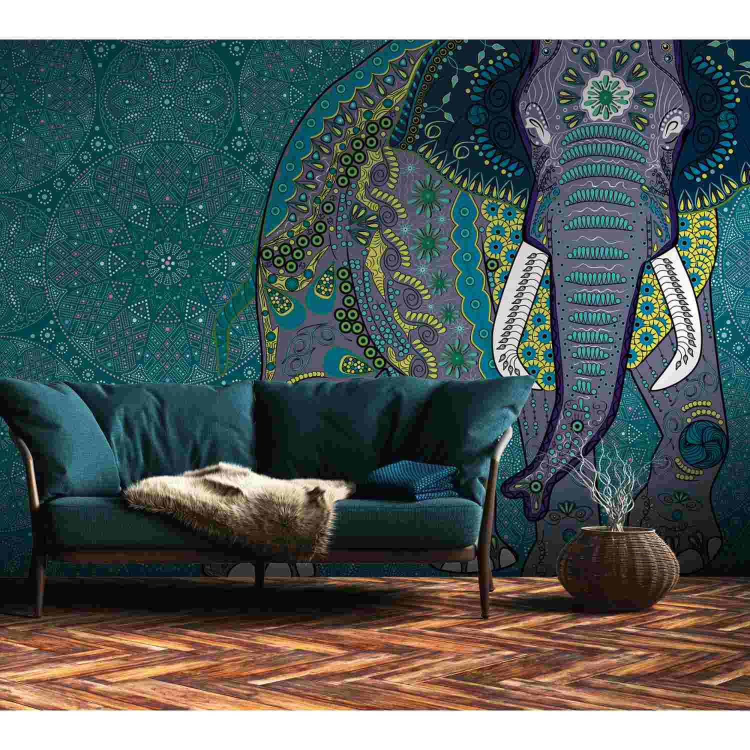 Tadessi Fototapete Tiere Elefant M1-No.10290 Digitaldruck Tapete Blau Grau - Orientalisches Motiv