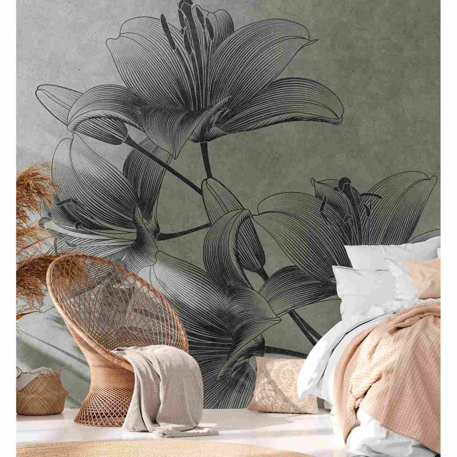 Tadessi Fototapete Blumen M1-No.10302 Digitaldruck Tapete Grau - Floral Blüten Landhaus