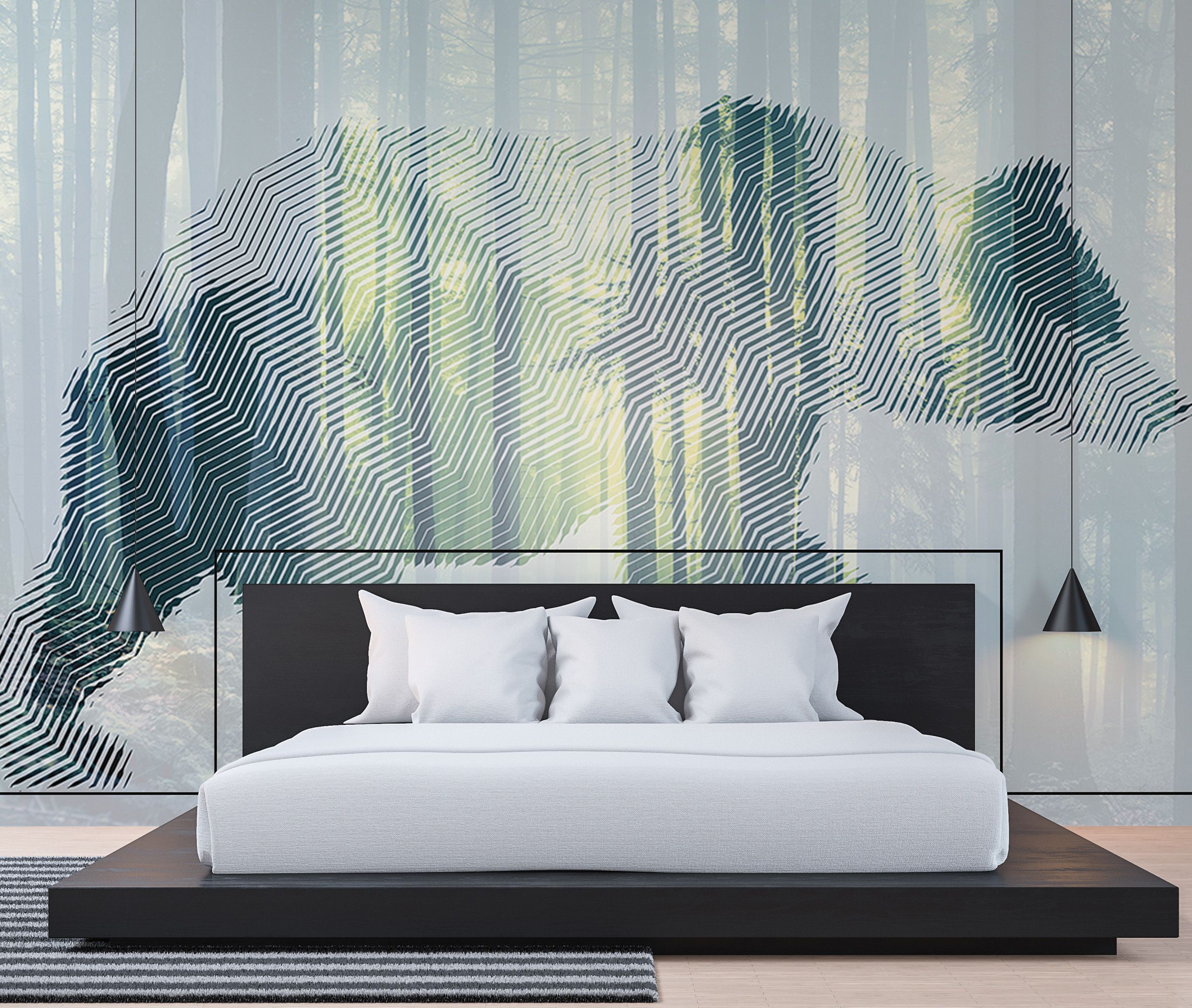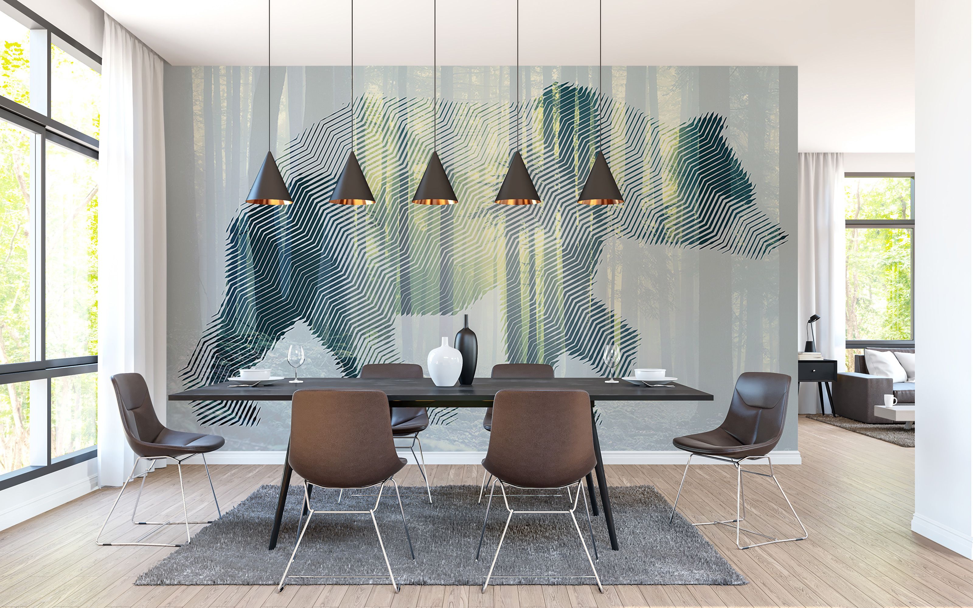 Tadessi Fototapete Tiere M1-No.60028 Digitaldruck Tapete Grün Weiß - Natur Bär Waldtapete