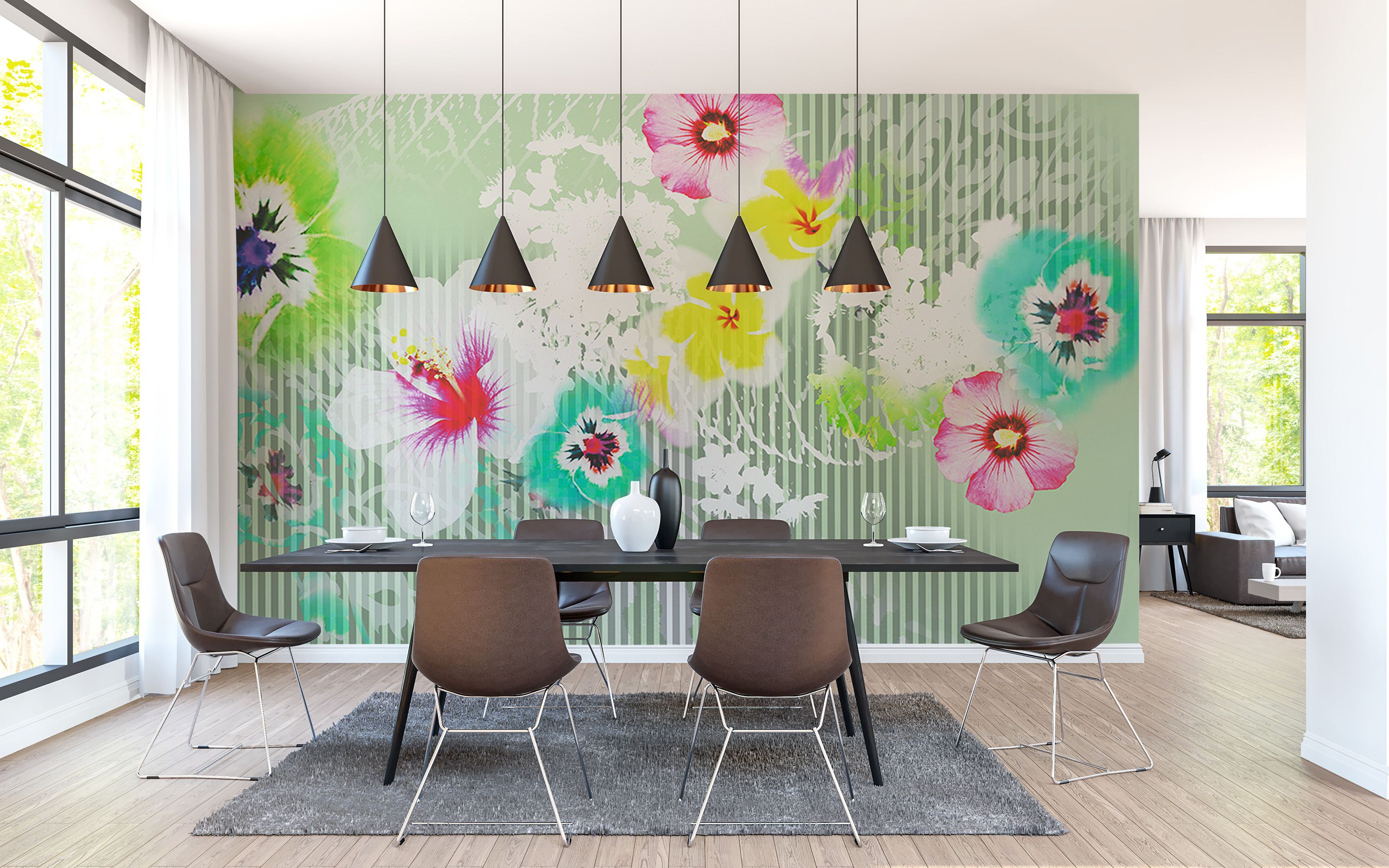 Tadessi Fototapete Blumen M1-No.60034 Digitaldruck Tapete Bunt Grün - Floral Hawaiiblüte
