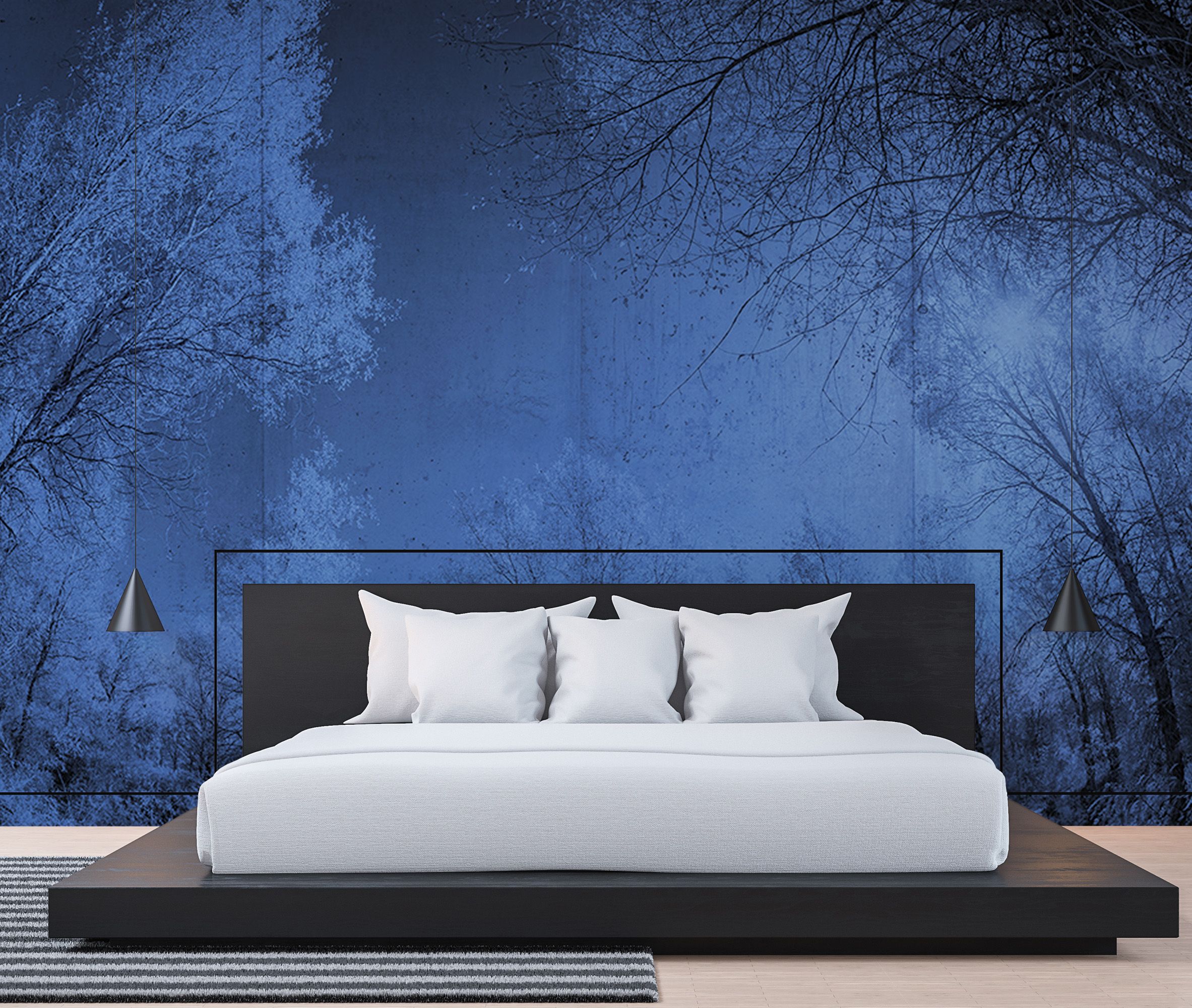Tadessi Fototapete Wald M1-No.60139 Digitaldruck Tapete Blau Schwarz