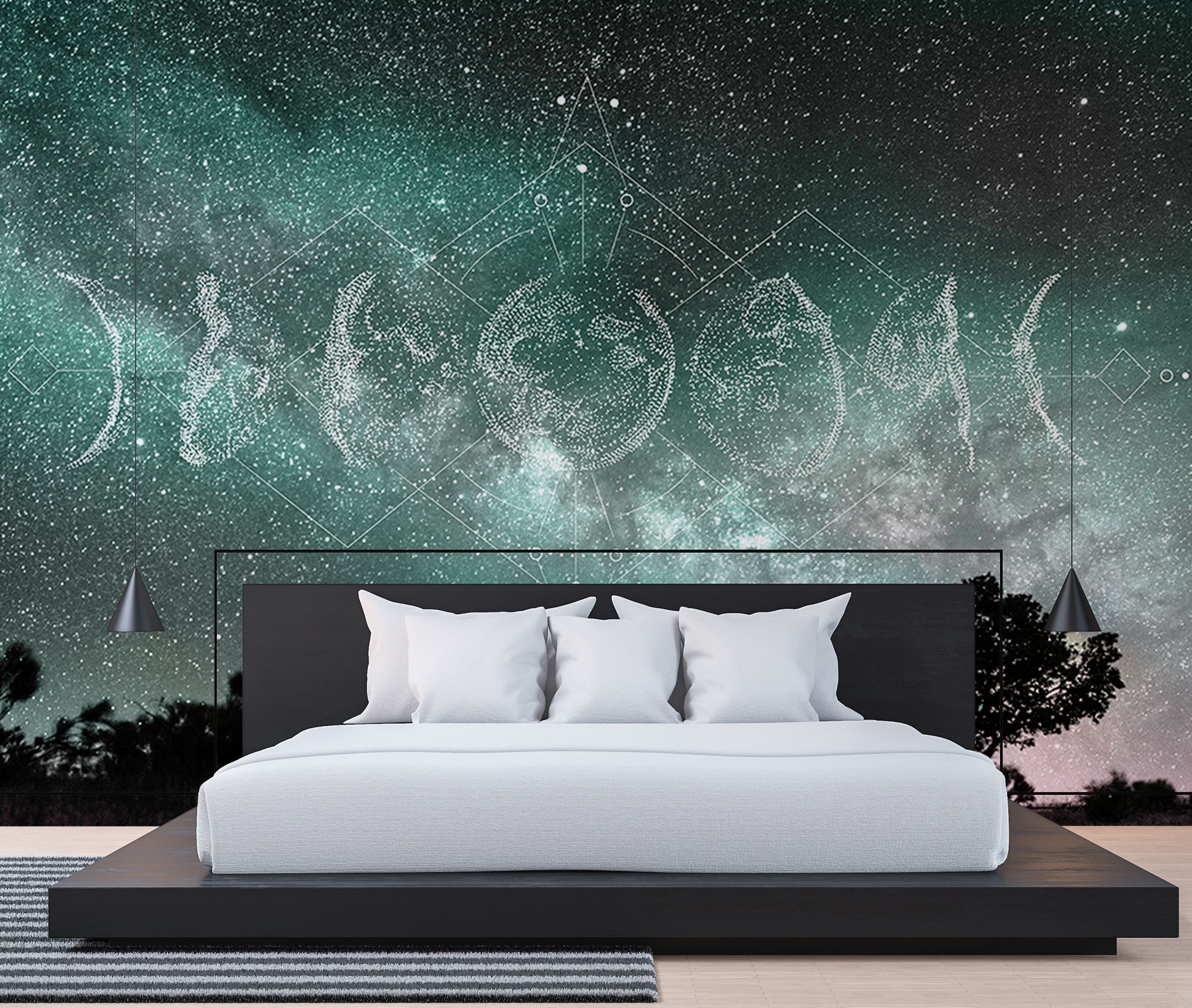 Tadessi Fototapete Himmel M1-No.60200 Digitaldruck Tapete Grün Blau - Mond Wald