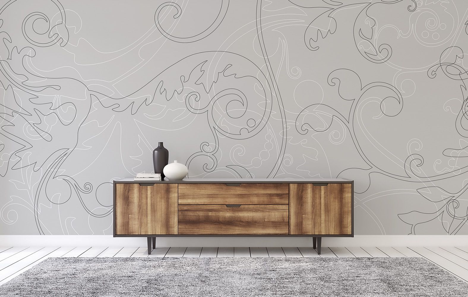 Tadessi Fototapete Barock M1-No.60227 Digitaldruck Tapete Grau Weiß - Ornamente