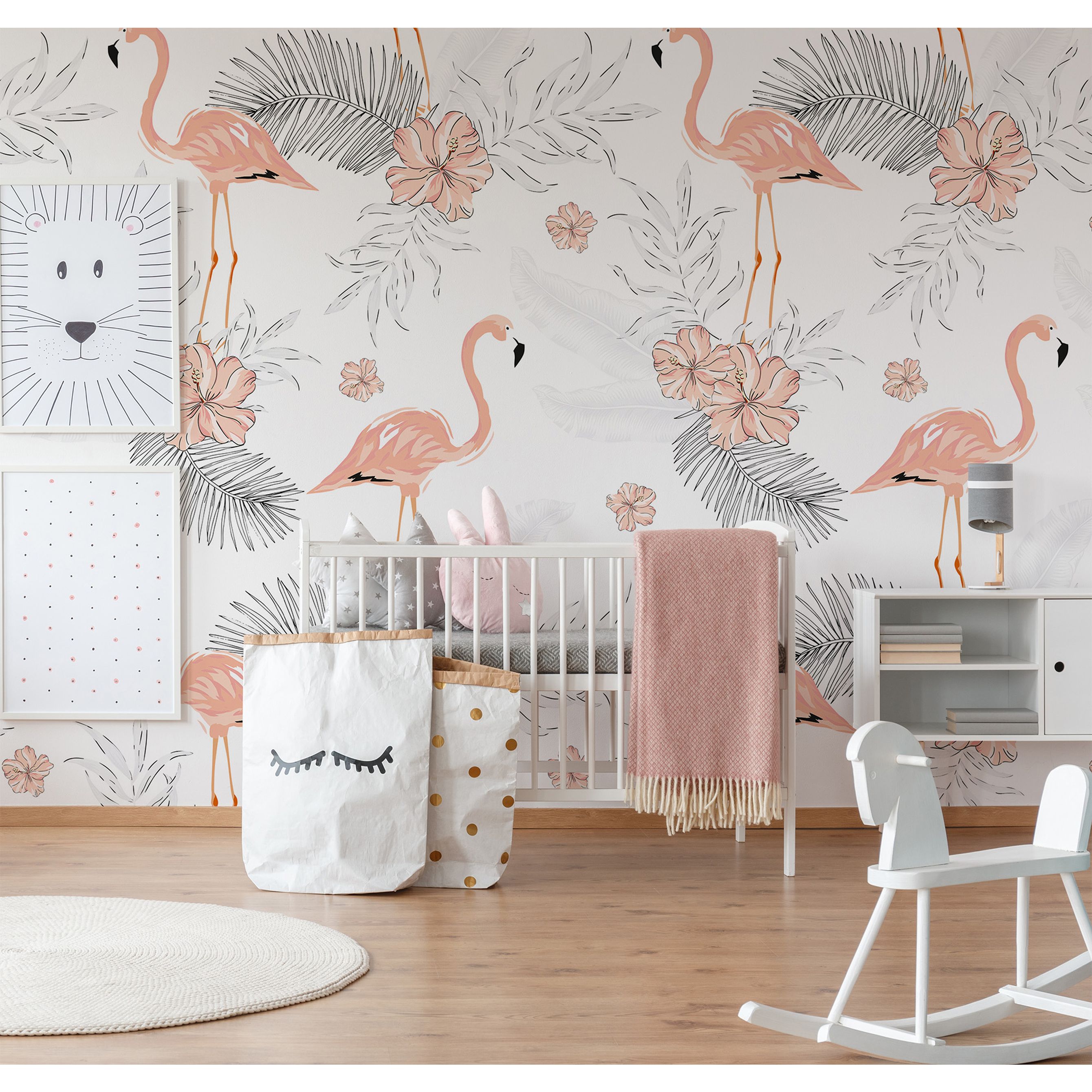 Tadessi Fototapete Dschungel M1-No.60501 Digitaldruck Tapete Weiß Rosa - Flamingo Vögel