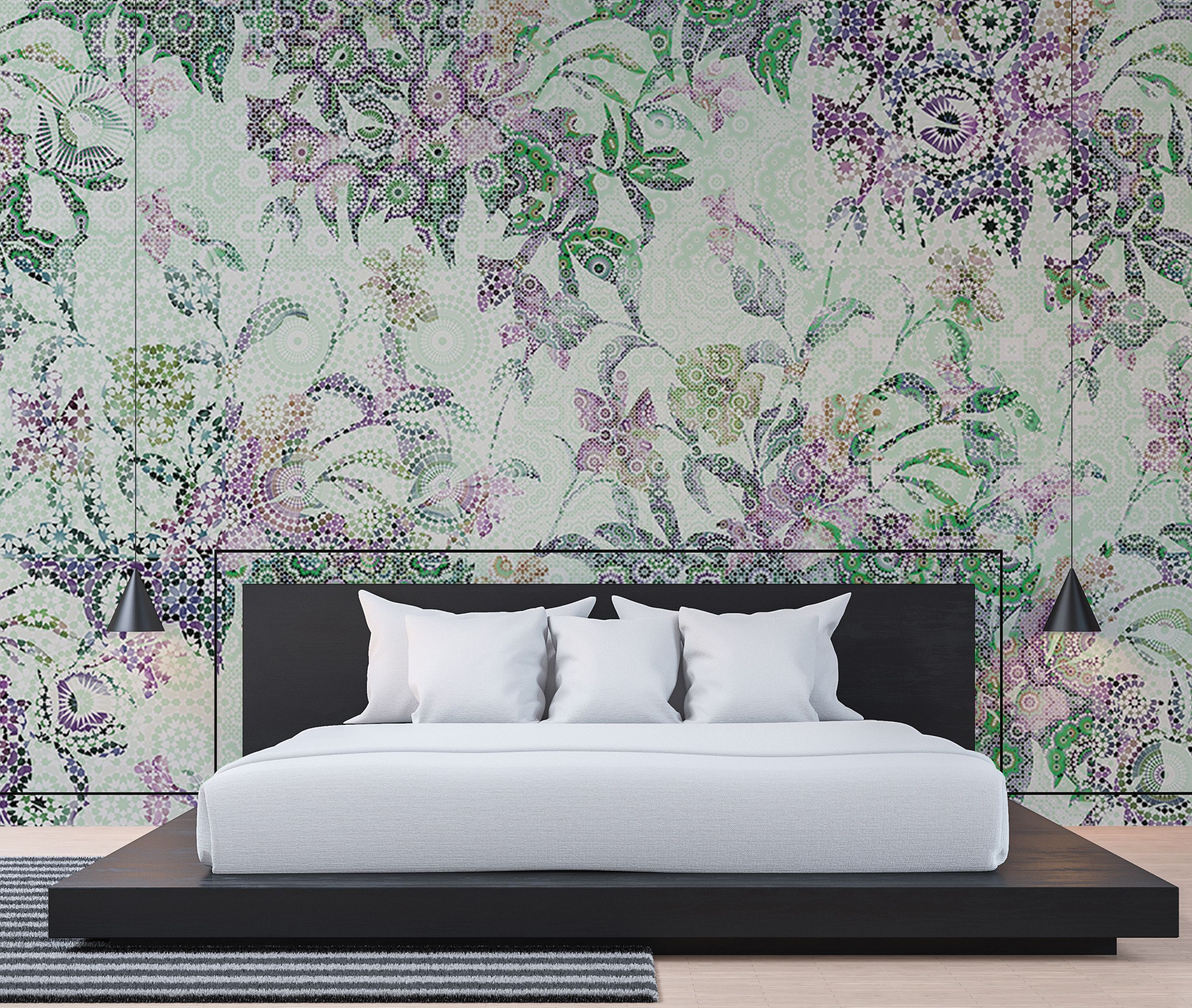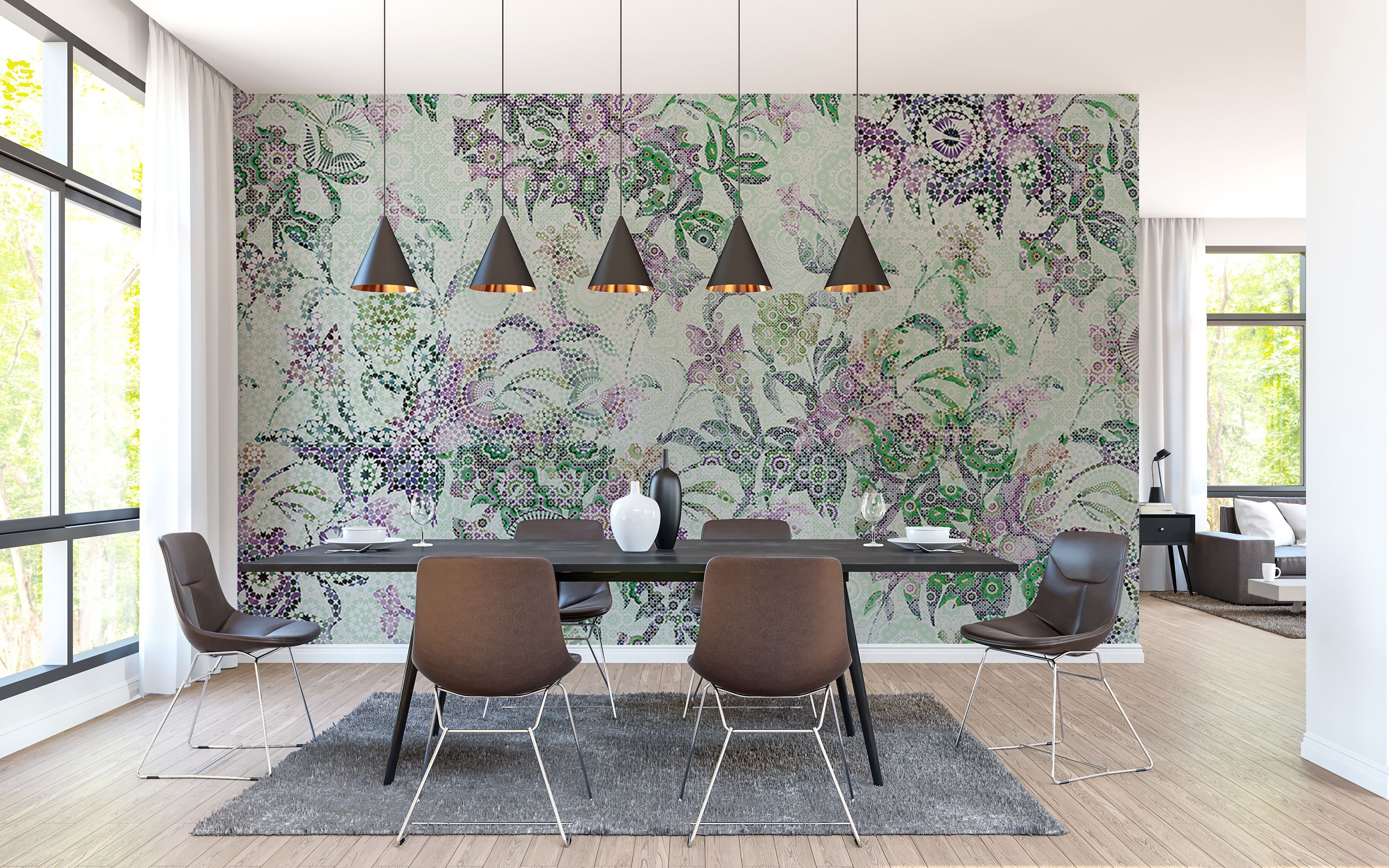 Tadessi Fototapete Blumen M1-No.60643 Digitaldruck Tapete Grün Lila - Pflanzen Floral