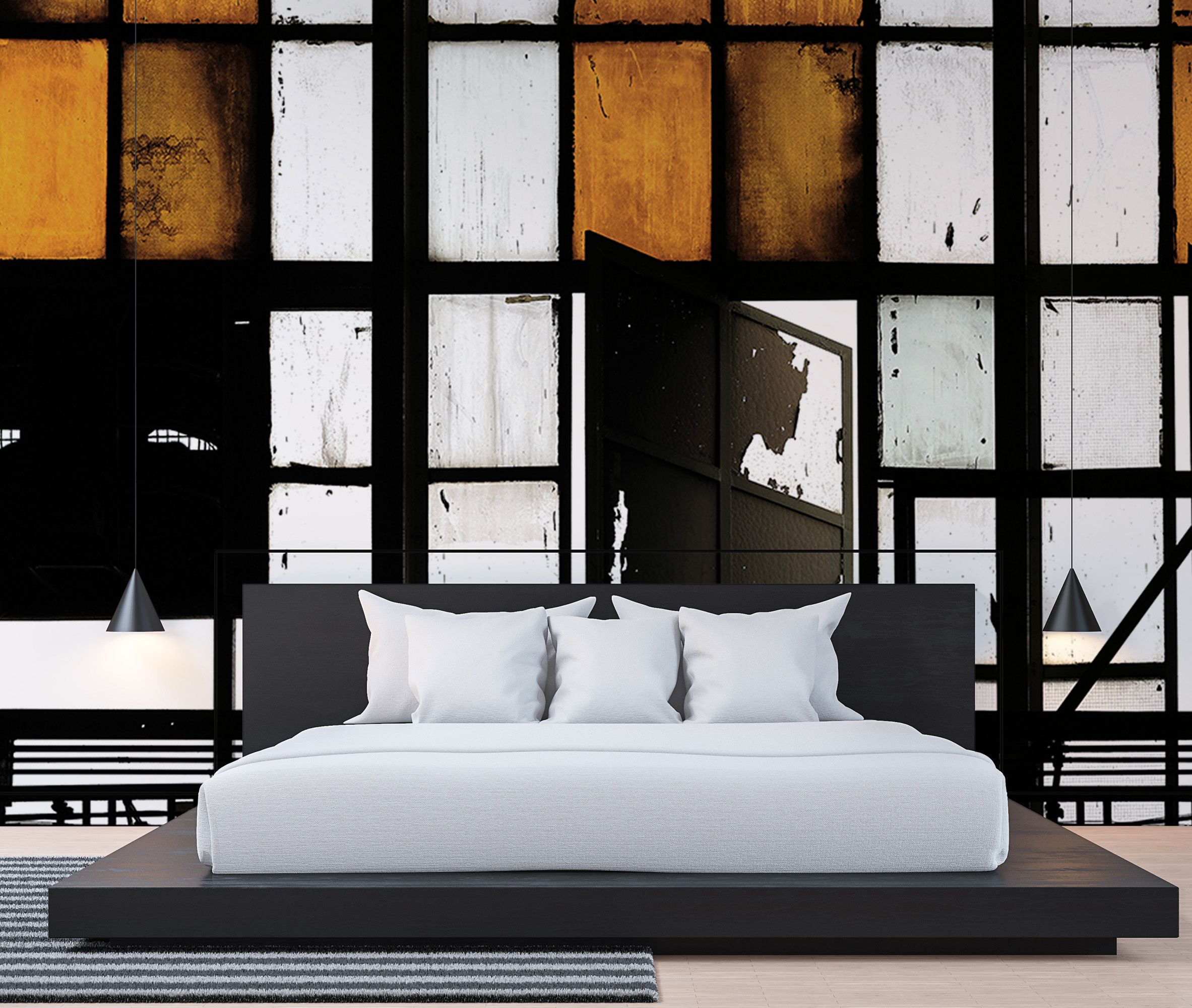 Tadessi Fototapete Fenster M1-No.60756 Digitaldruck Tapete Orange Schwarz