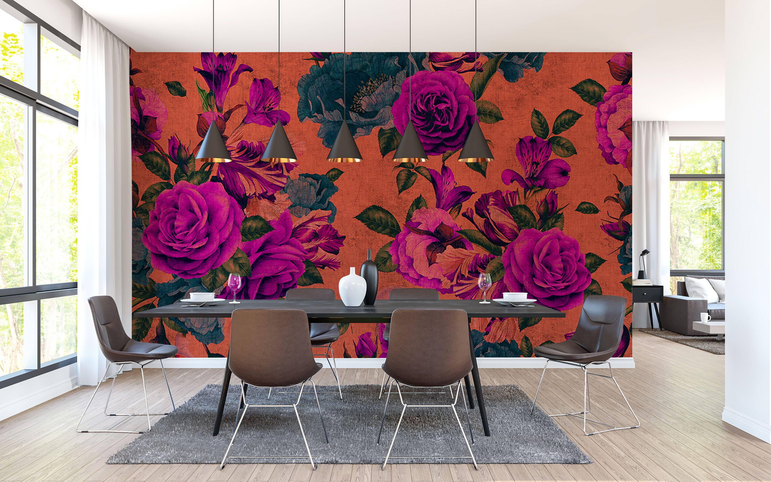 Tadessi Fototapete Blumen M1-No.60928 Digitaldruck Tapete Pink Orange - Rosen