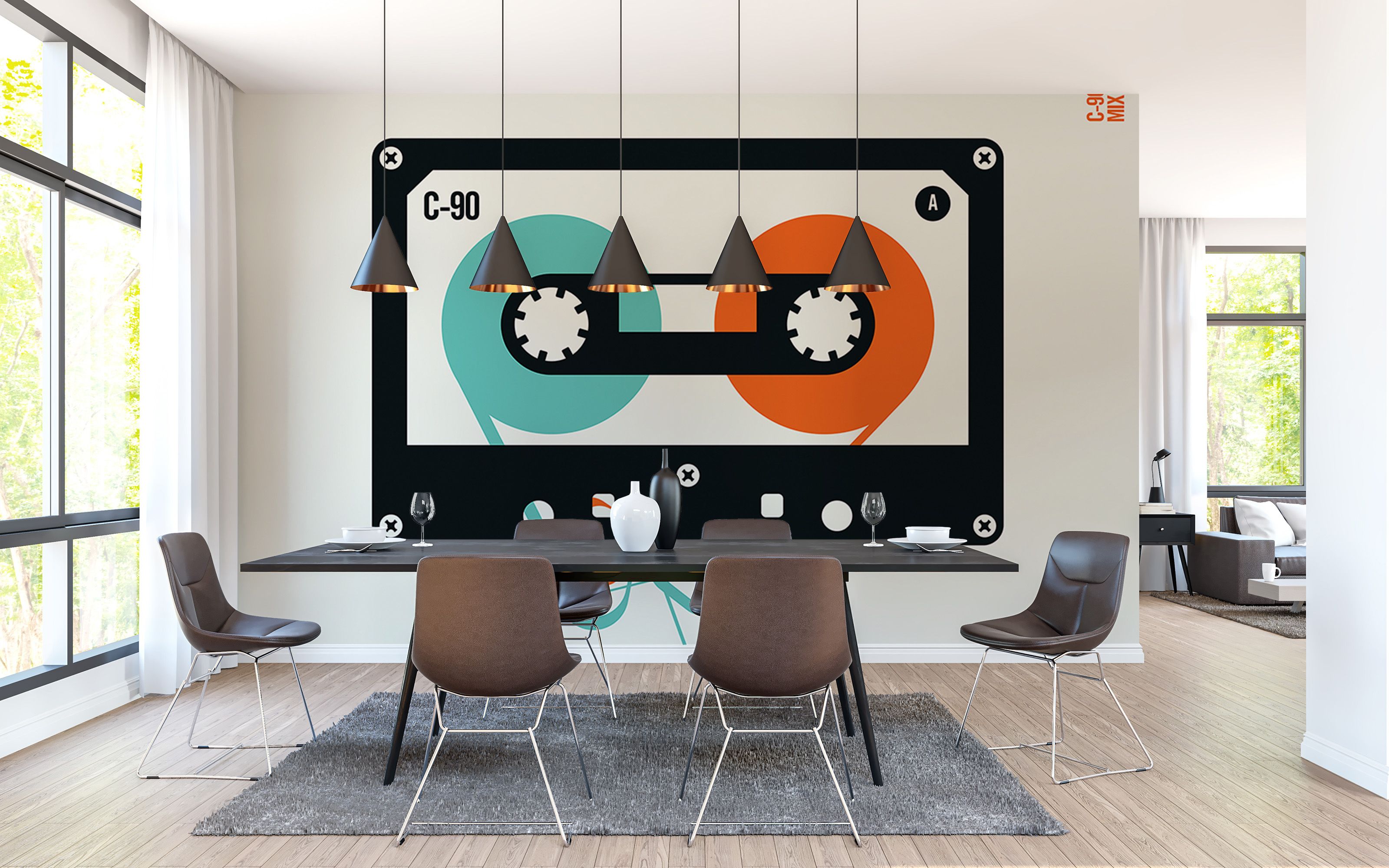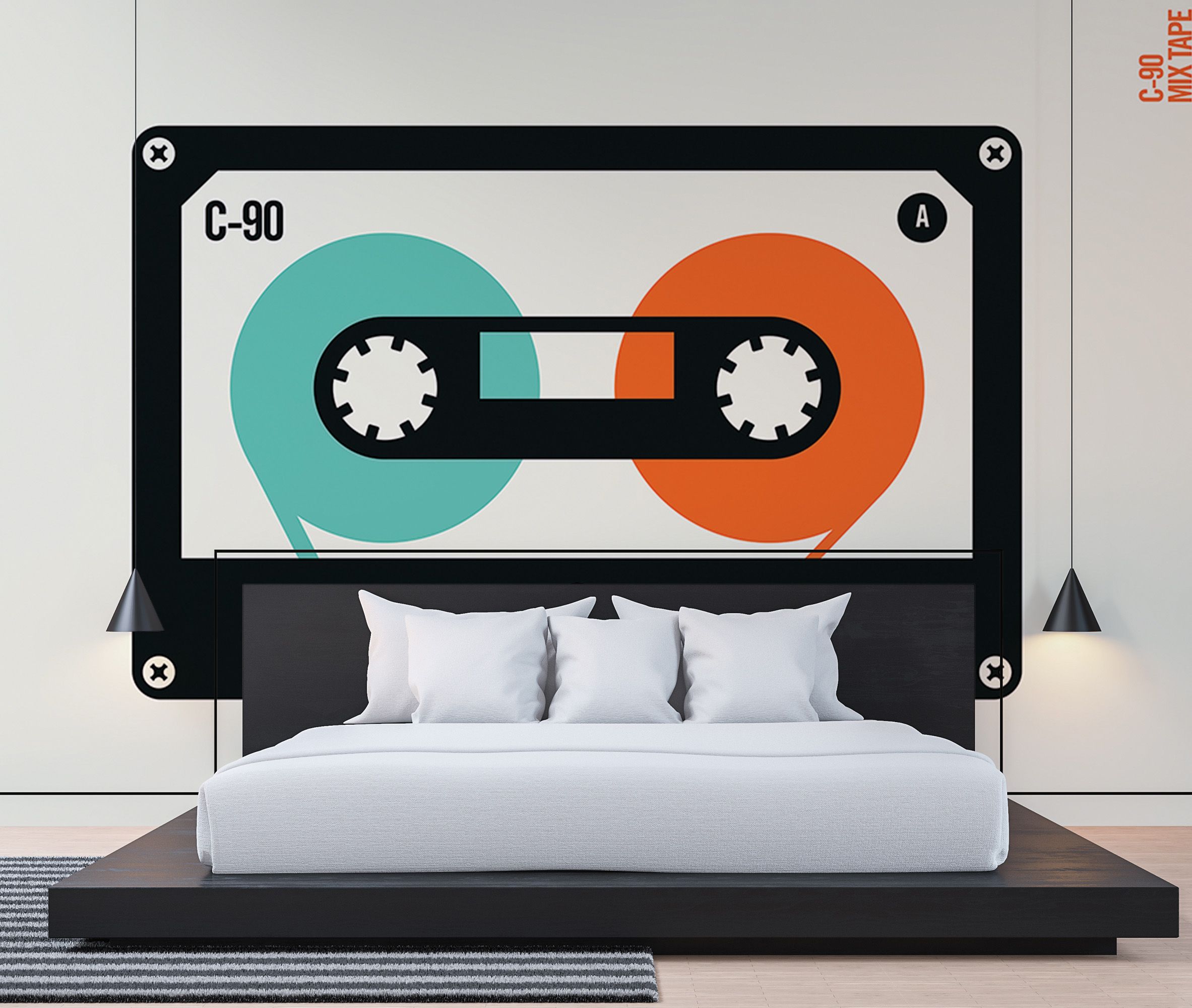 Tadessi Fototapete Modern M1-No.61106 Digitaldruck Tapete Blau Orange - Retro Kassette