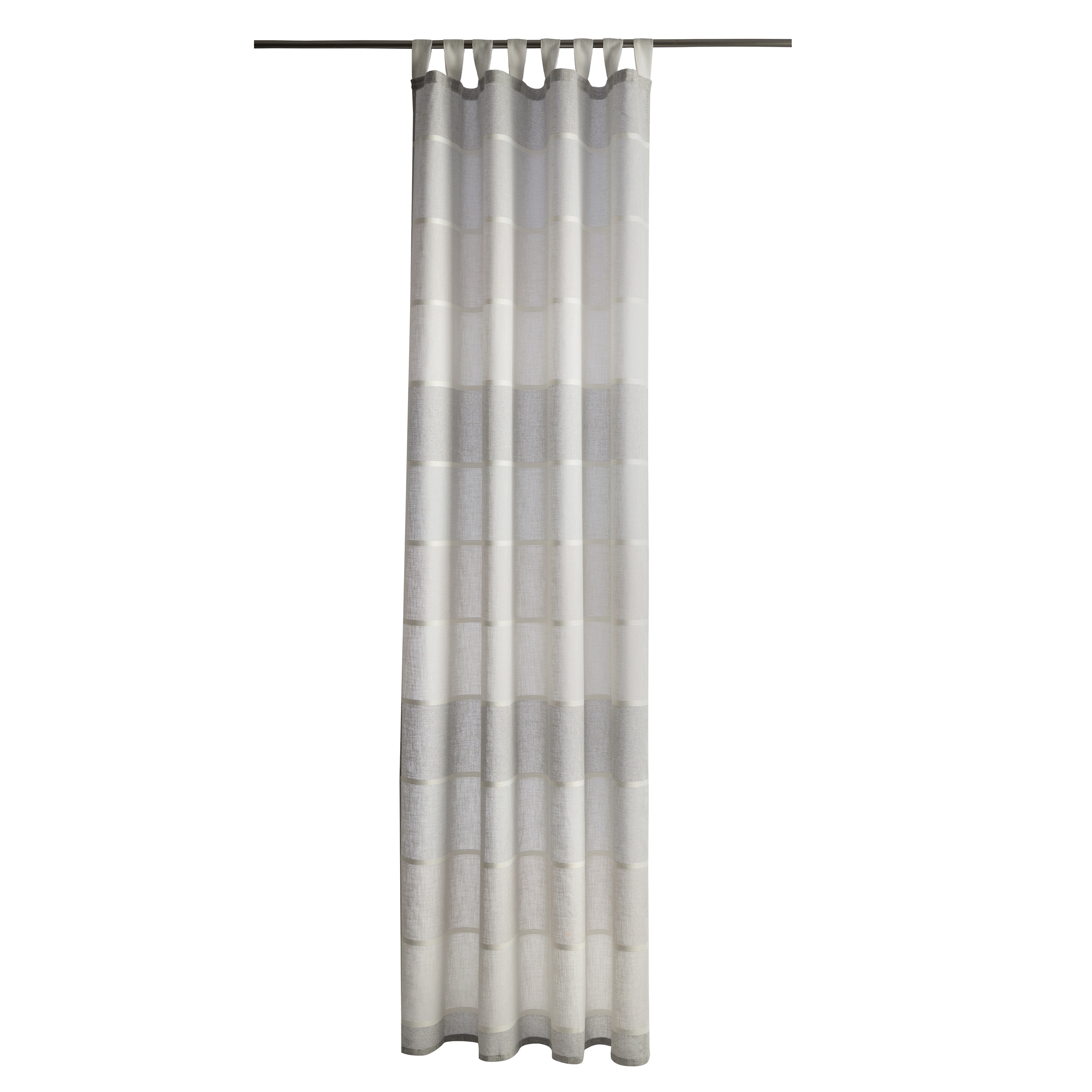 Am Fenster fertig dekoriert, reduziert sich die Gardine um etwa die Hälfte der Breite. Die Aufhängung an der Gardinenstange erfolgt mittels der Schlaufen, die inkl. hinternähtem Kräuselband variable genutzt werden können. Die Gardine ist in verschiedenen Farben erhältlich.