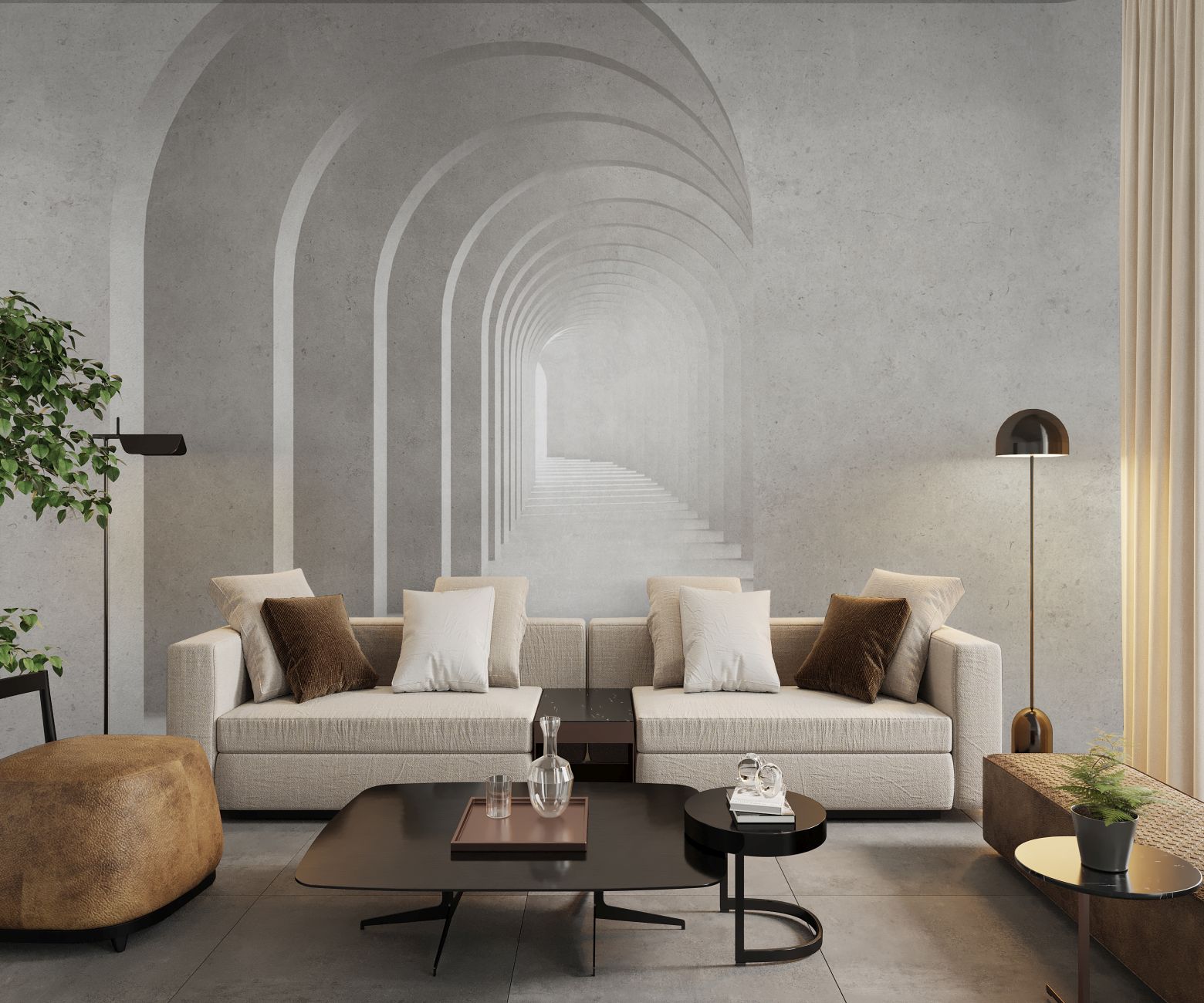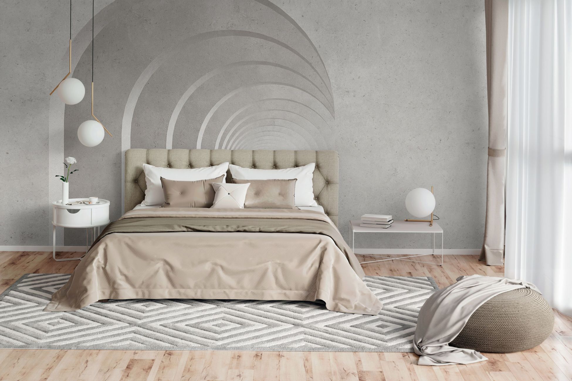 Tadessi Fototapete Betonoptik M1-No.11794 Digitaldruck Tapete Grau Weiß - Rundbogen 3D Optik