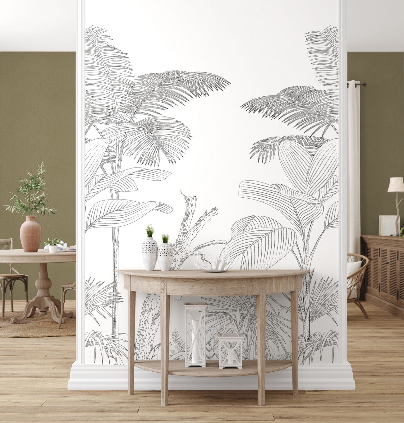 Tadessi Fototapete Dschungel-Optik M1-No.11628 Digitaldruck Tapete Schwarz Weiß - Palmen Wohnzimmer
