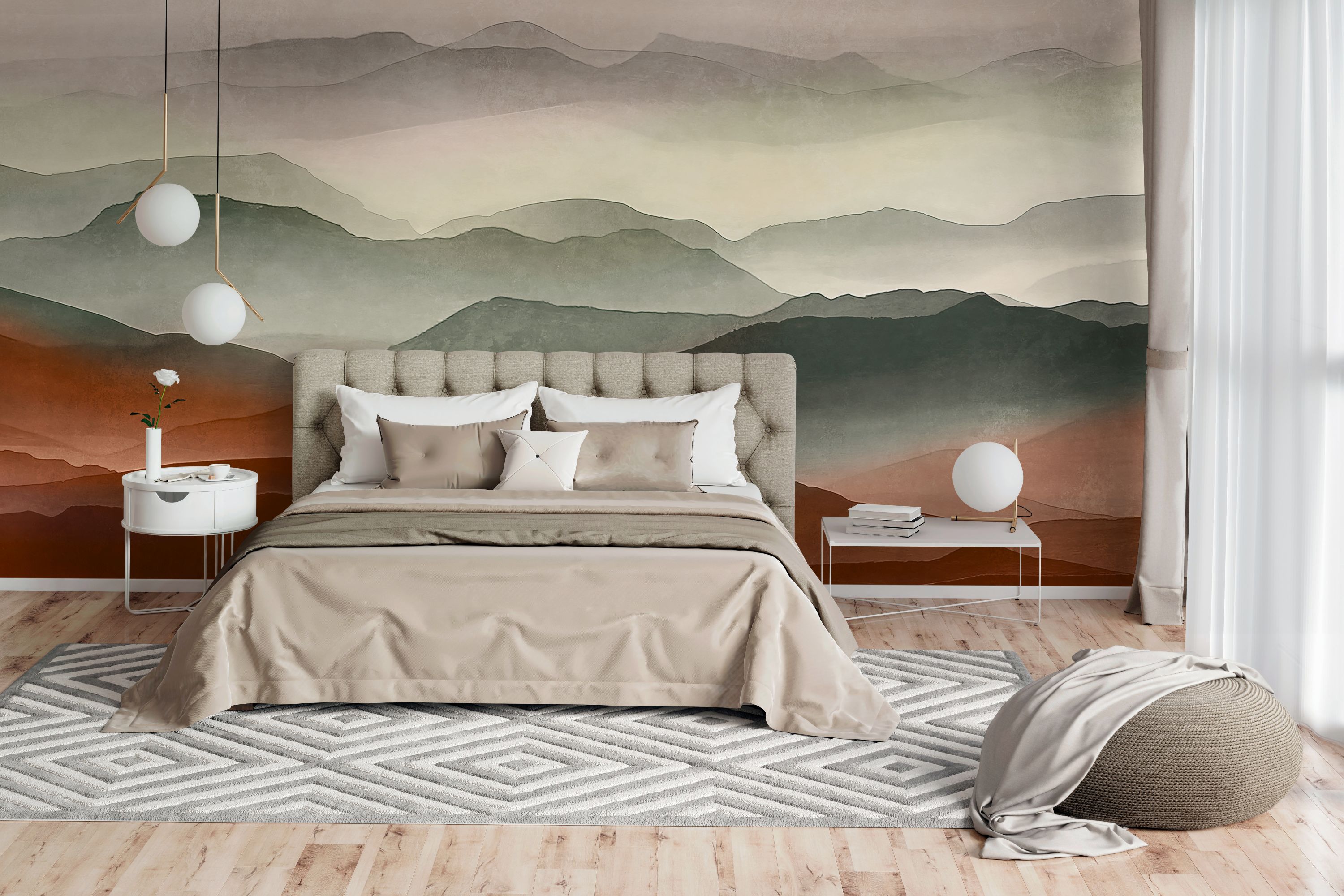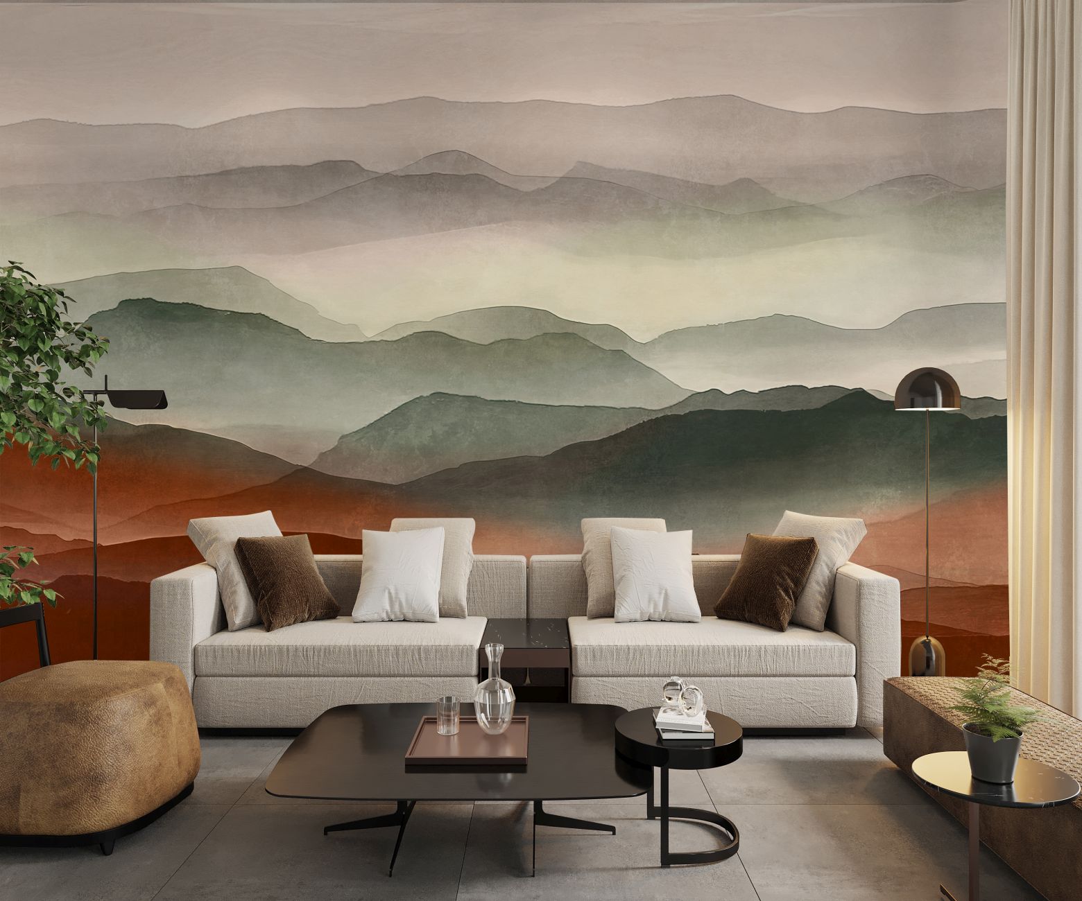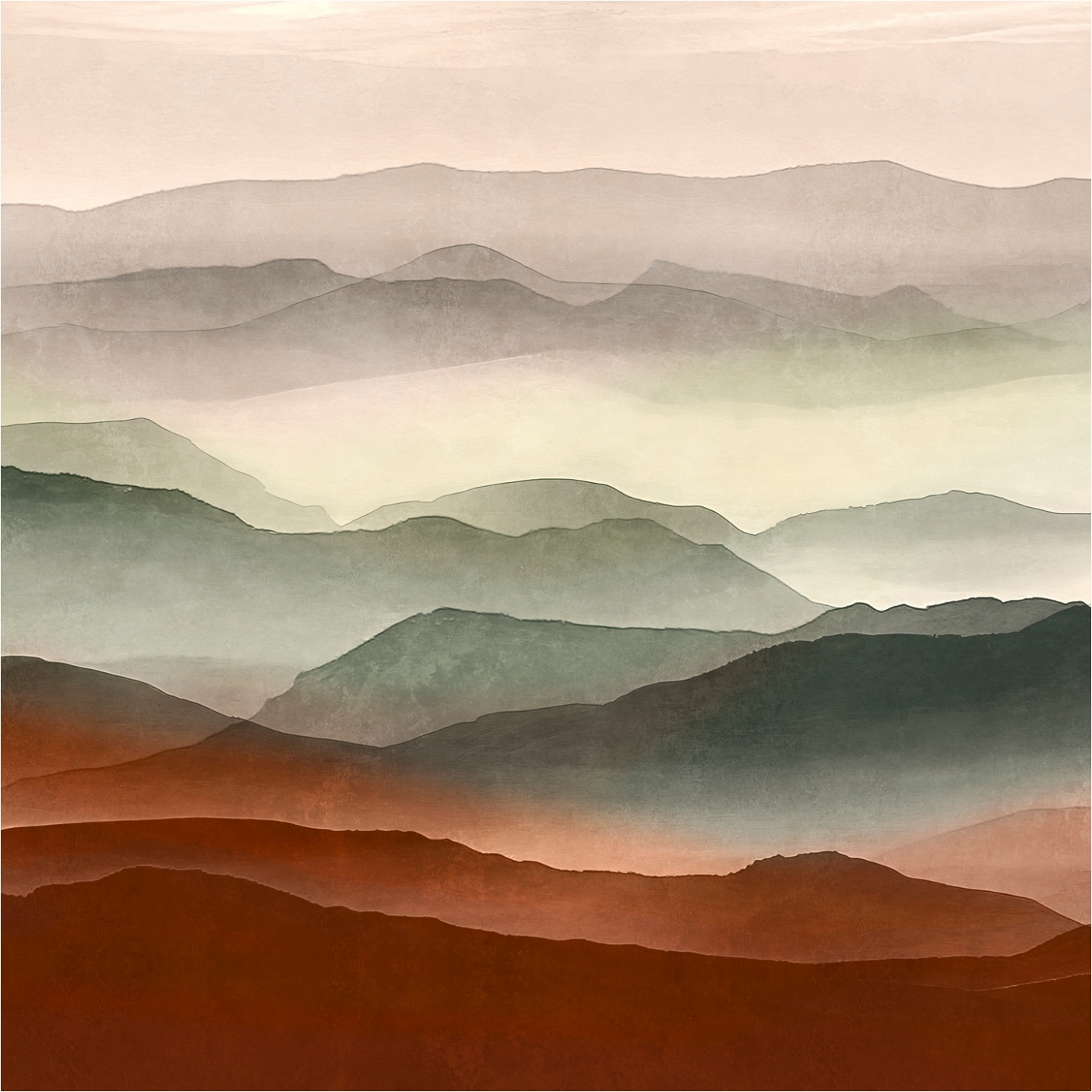 Tadessi Fototapete Landschaft M1-No.11777 Digitaldruck Tapete Rot Grün - Nebel Wohnzimmer Küche