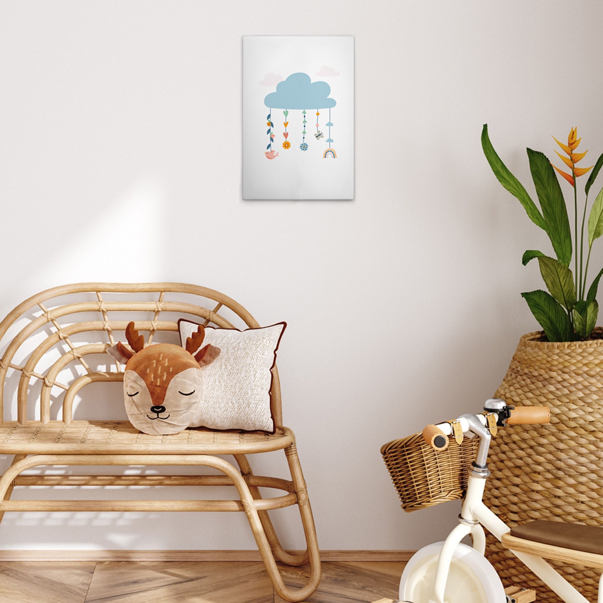 Tadessi Leinwandbild Kinderzimmer Wolken Mobile - 30 x 45 cm - M1-No.51473 - Keilrahmen in Weiß Bunt