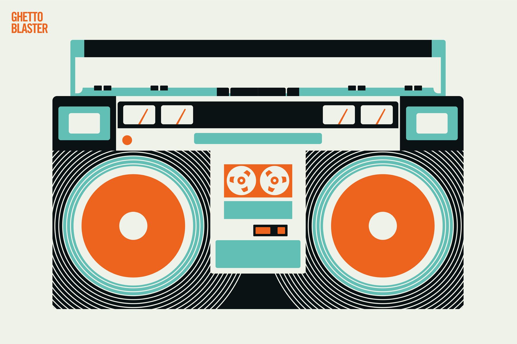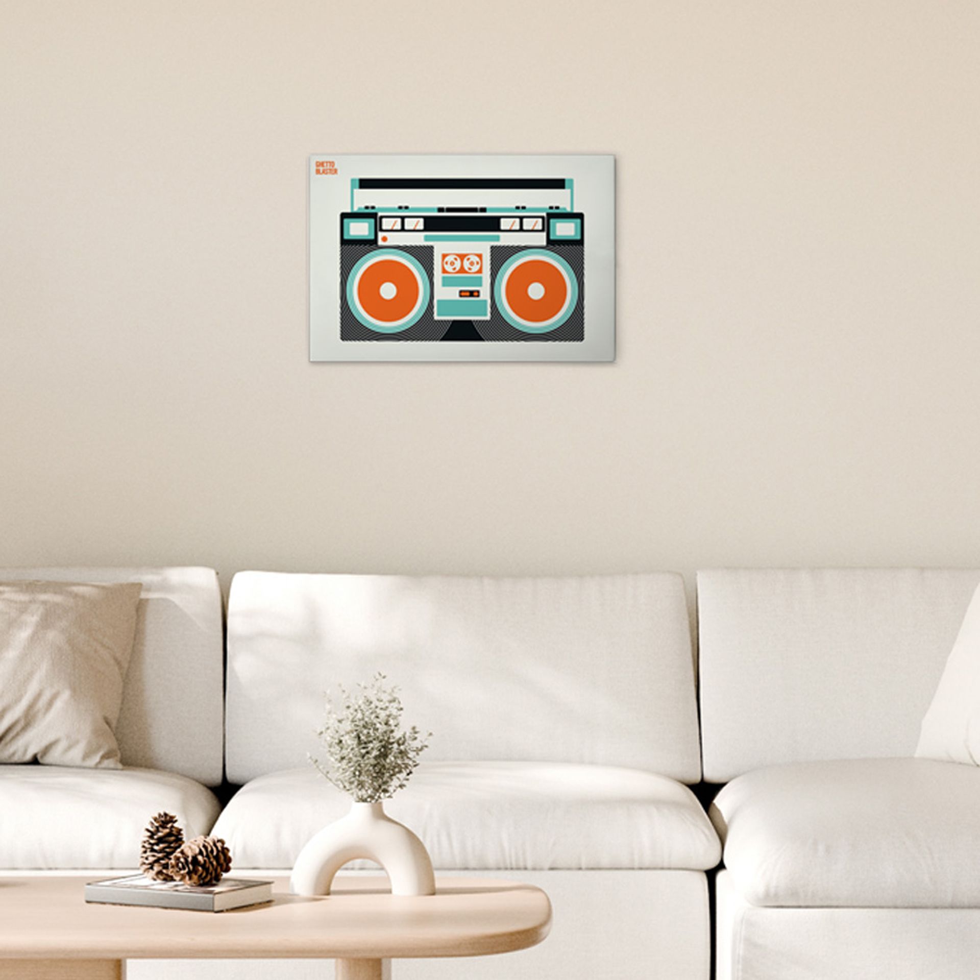 Tadessi Leinwandbild Retro Ghettoblaster - 45 x 30 cm - M1-No.51221 - Keilrahmen in Creme Schwarz