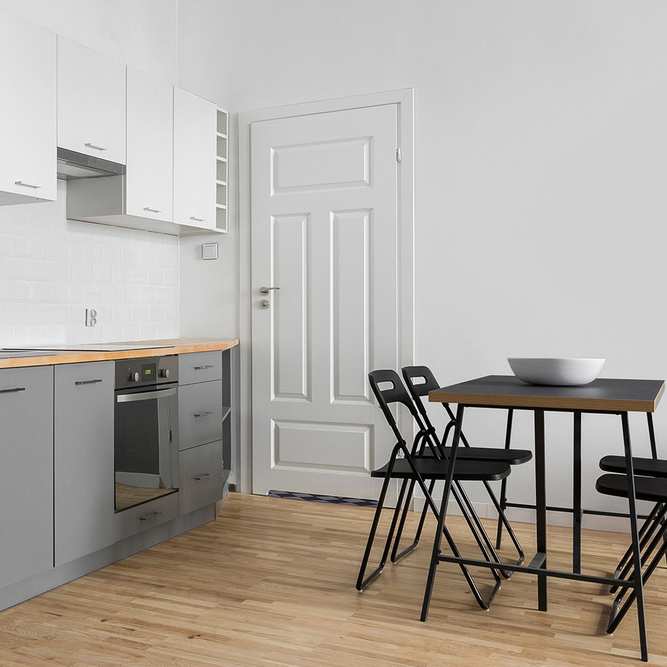 Ja. Nassabriebklasse 2 bedeutet feucht abwischbar und alltagstauglich auch in Räumen wie Küche und Bad. Nutze zur Reinigung lauwarmes Wasser und milde Reinigungsmittel, ohne scheuernde Schwämme.