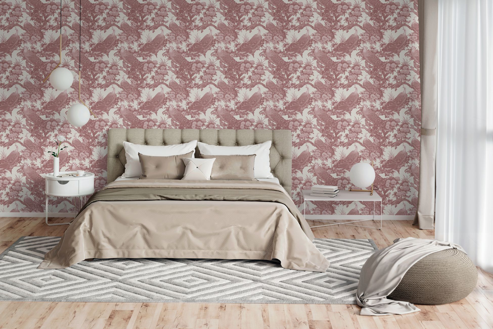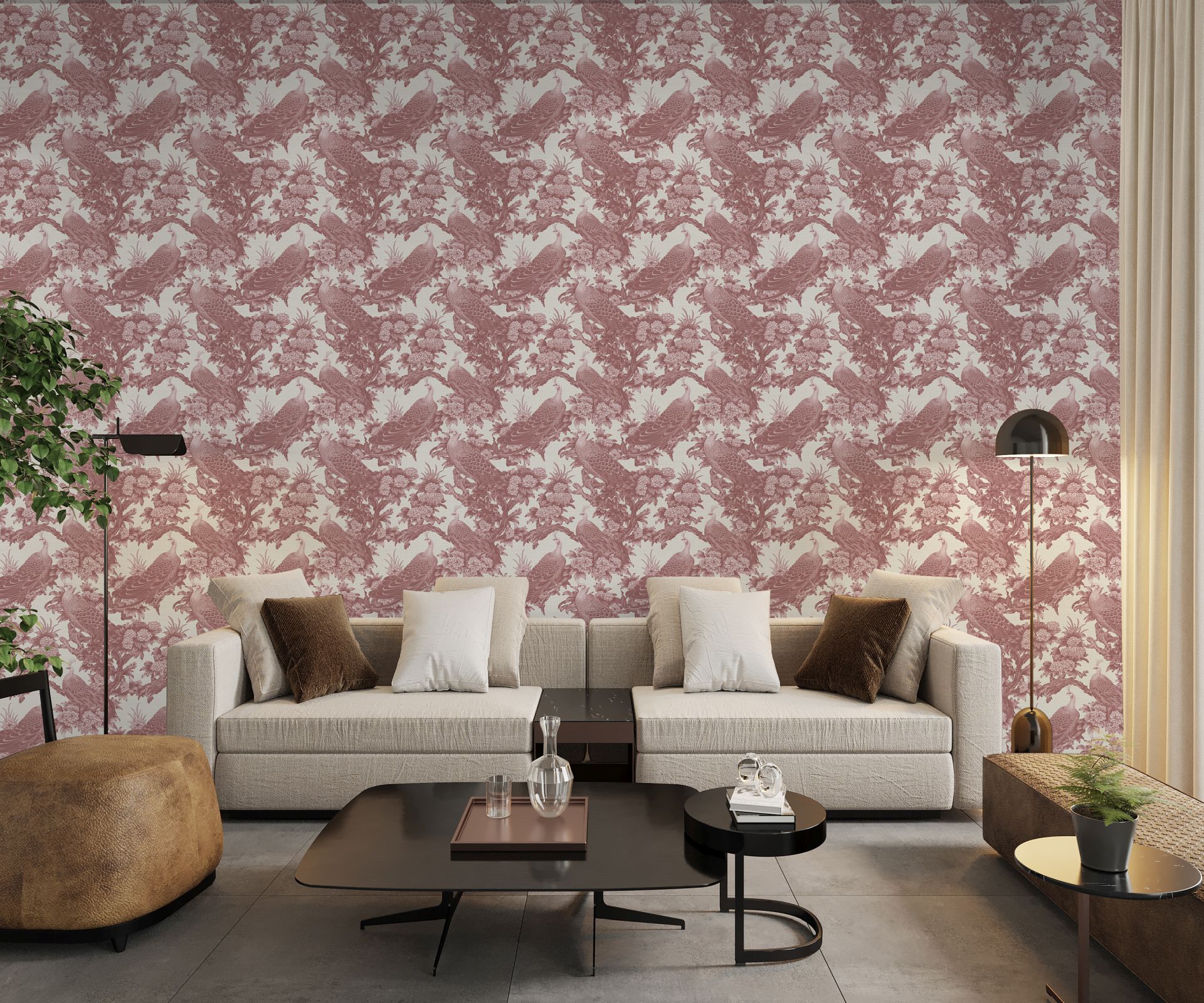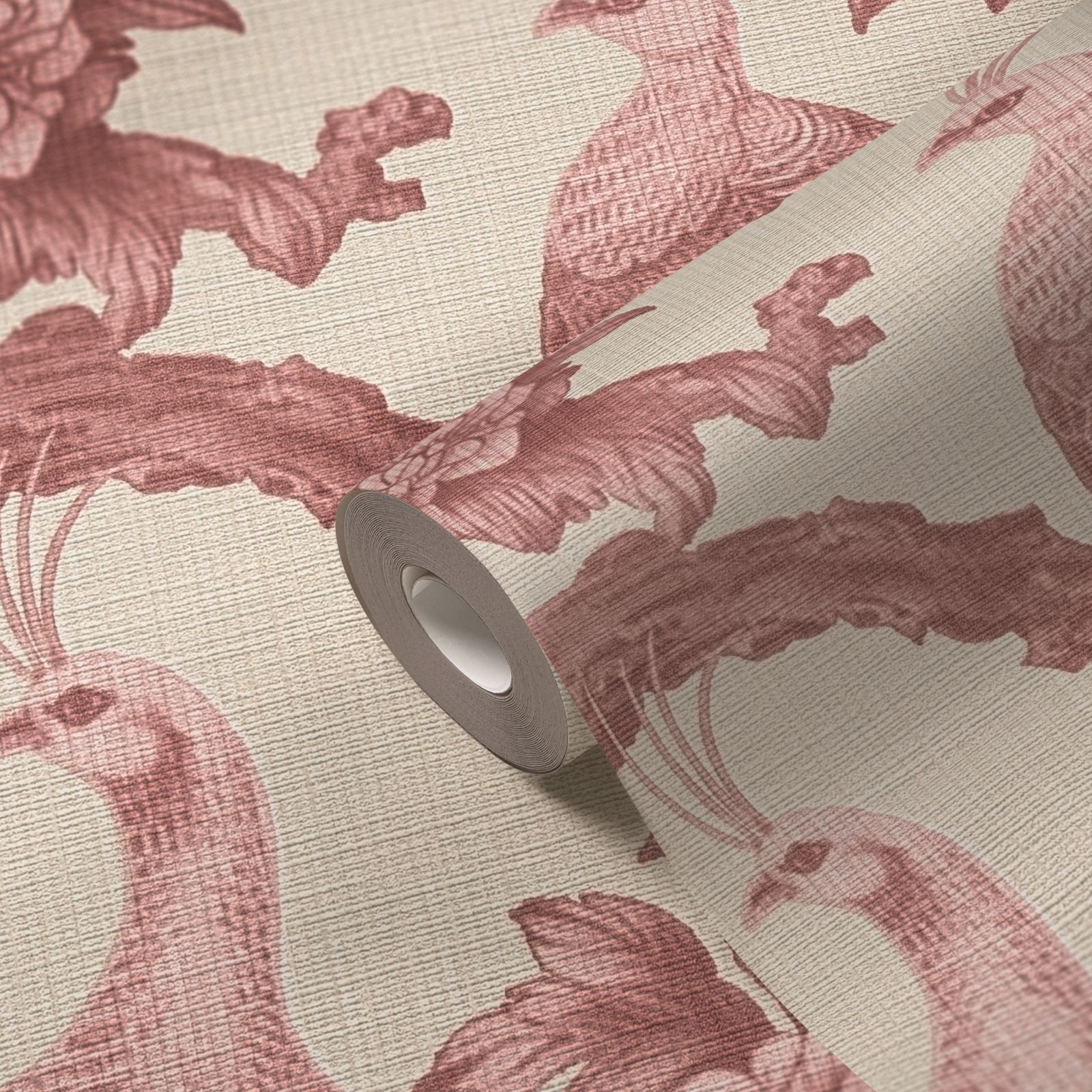 Tapete Floral M1-No.11818 | Vliestapete Vögel | Rot | Creme | Natur | Wohnzimmer | Schlafzimmer