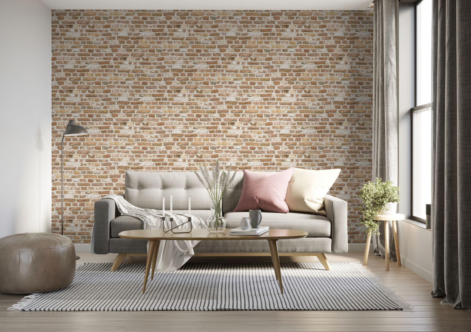 Tapete Steine M1-No.11564 | Vliestapete Stein-Optik | Rot | orange | Backstein | Wohnzimmer