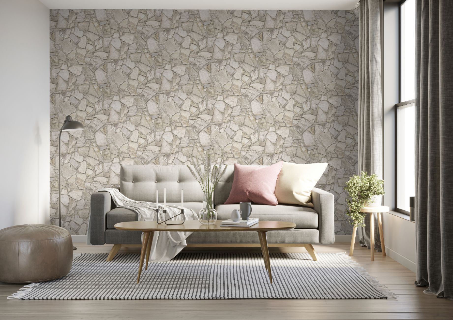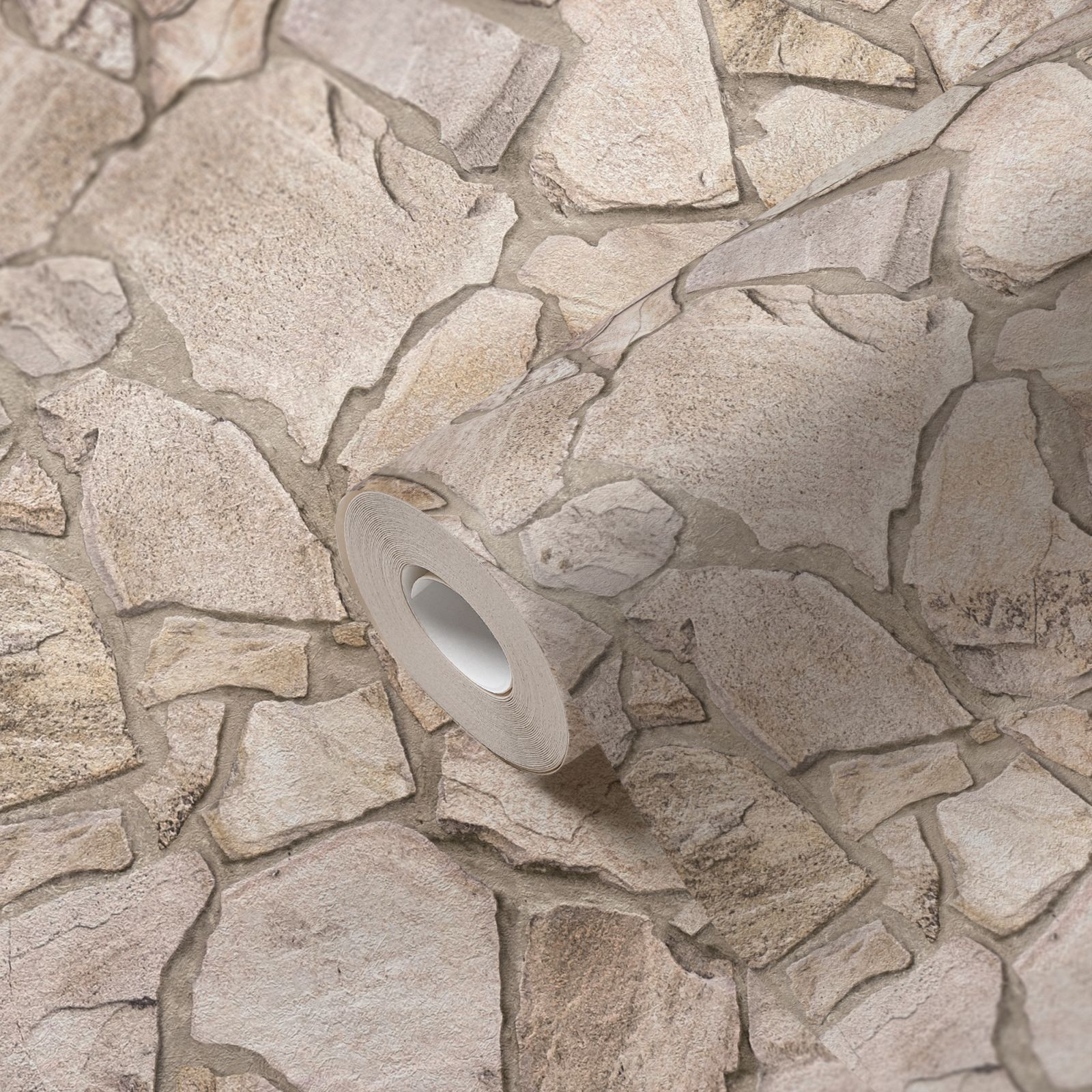 Tapete Steine M1-No.11568 | Vliestapete Stein-Optik | Beige | Grau | NaturSteine | Wohnzimmer
