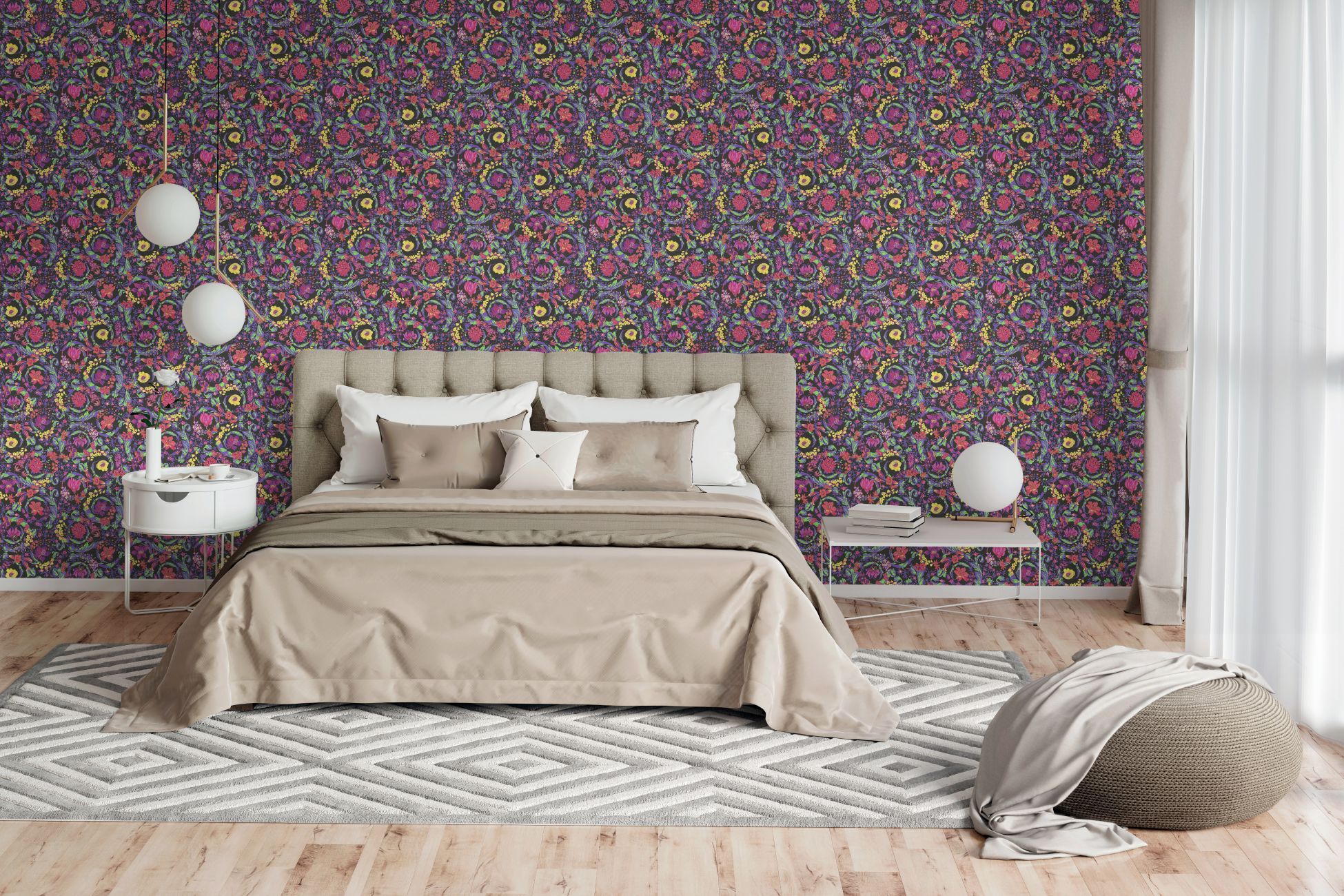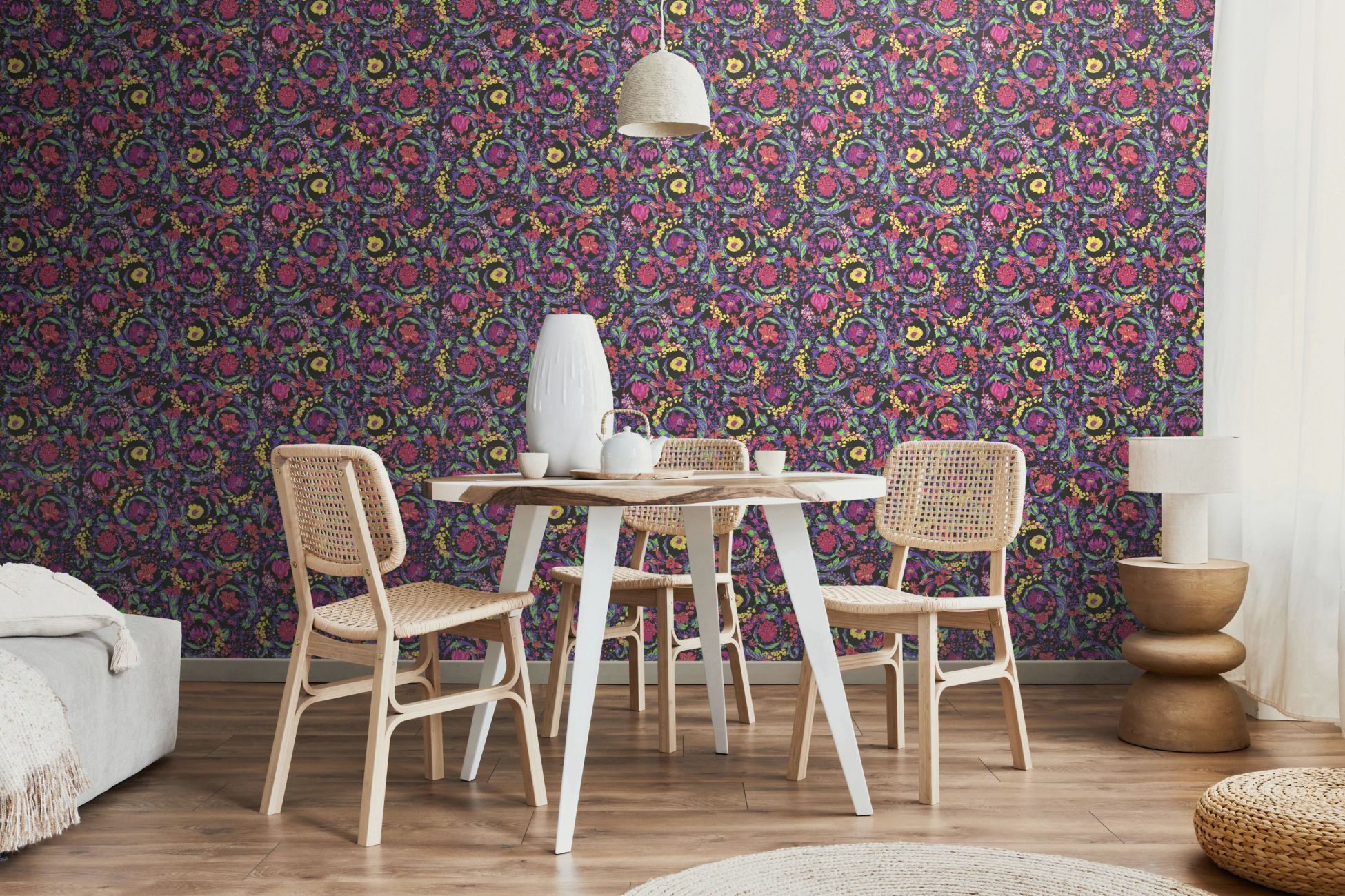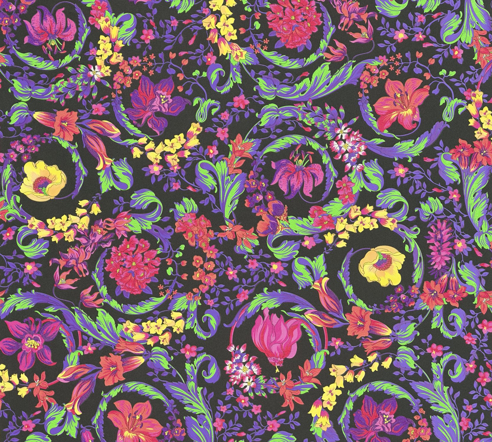 Tapete Versace Floral M1-No.11543 | Vliestapete Design | Bunt | Schwarz | Floral | Ranken | Luxus