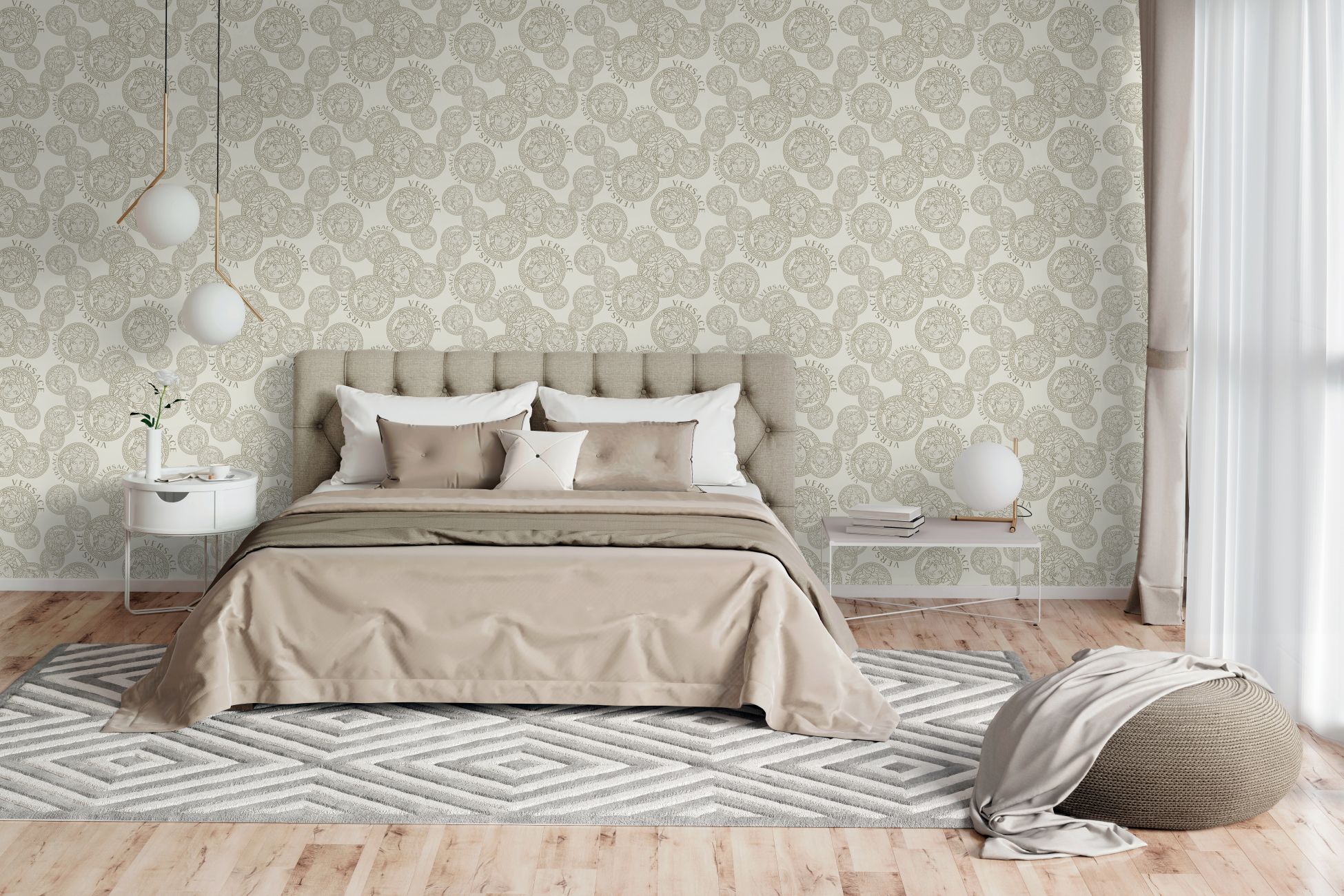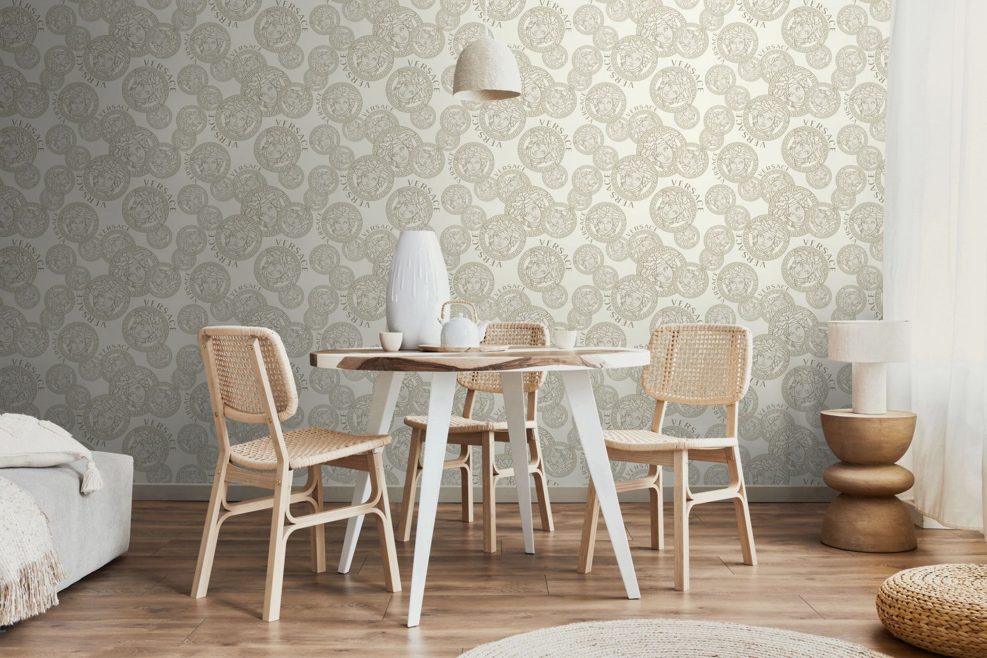 Tapete Versace Luxus-Optik M1-No.11517 | Vliestapete Design | Creme | Beige | Medusa | Schriftzug