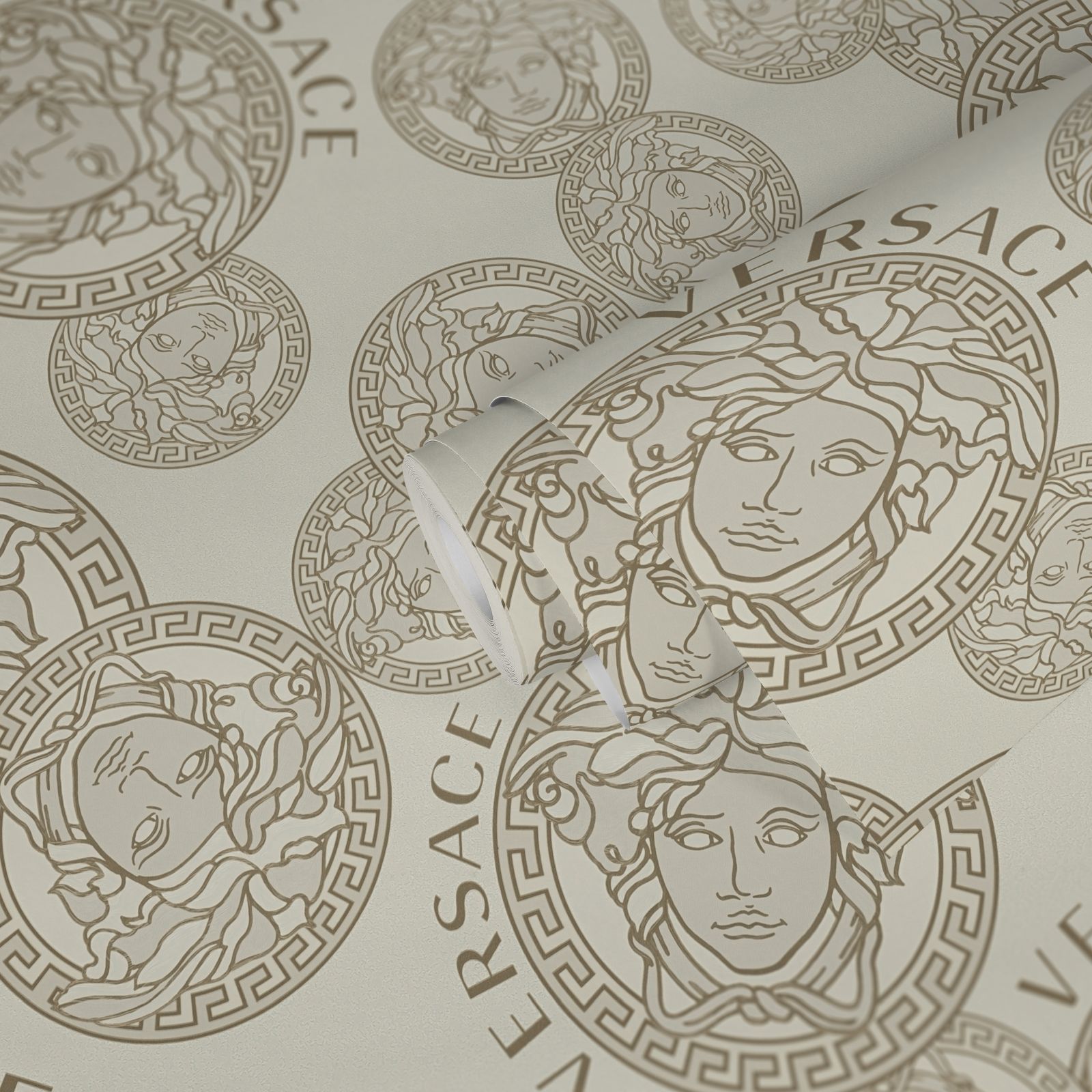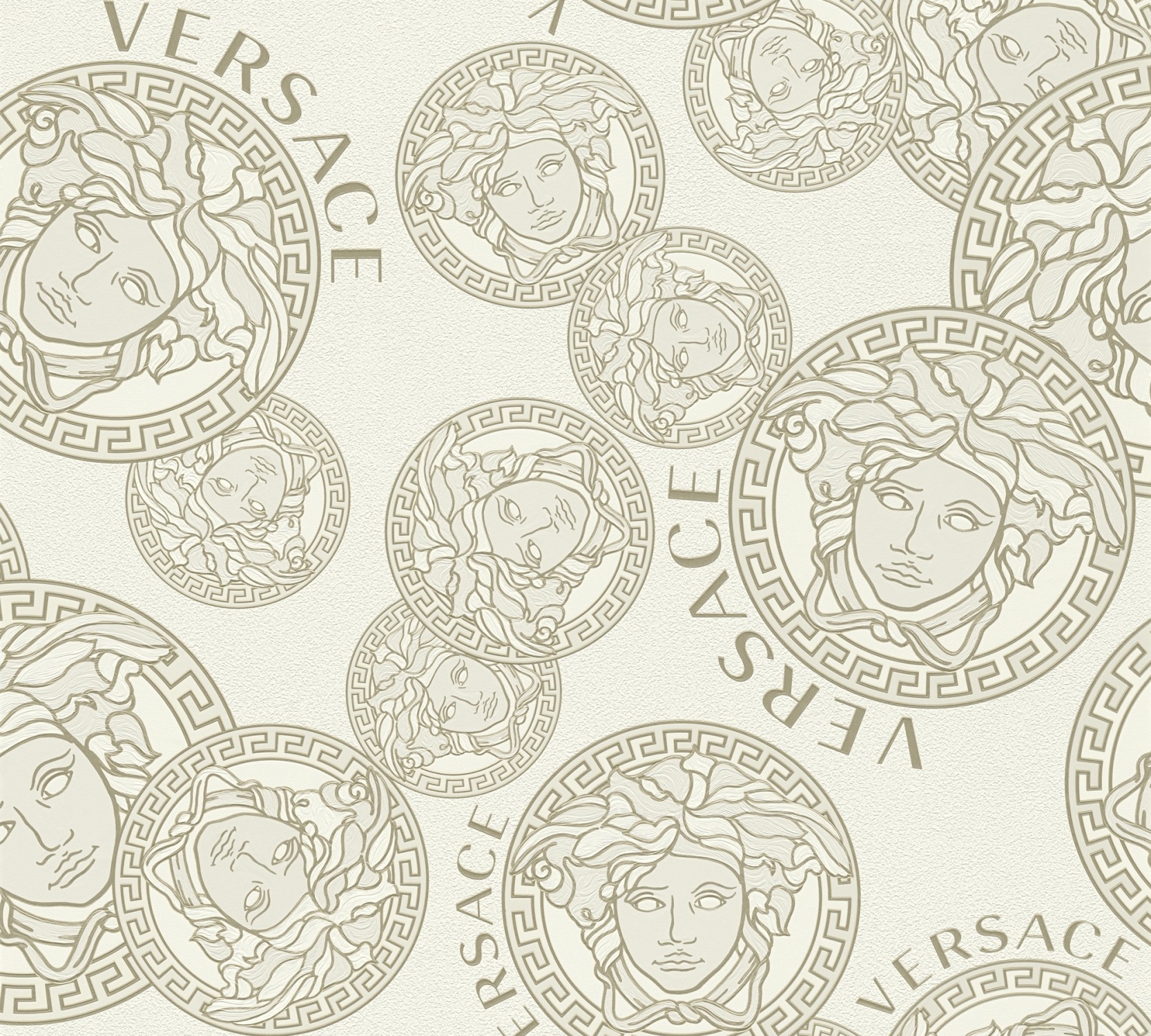 Tapete Versace Luxus-Optik M1-No.11517 | Vliestapete Design Creme Beige Medusa Schriftzug