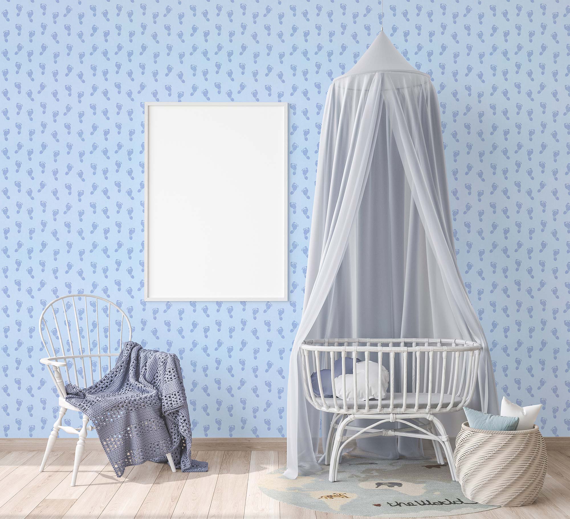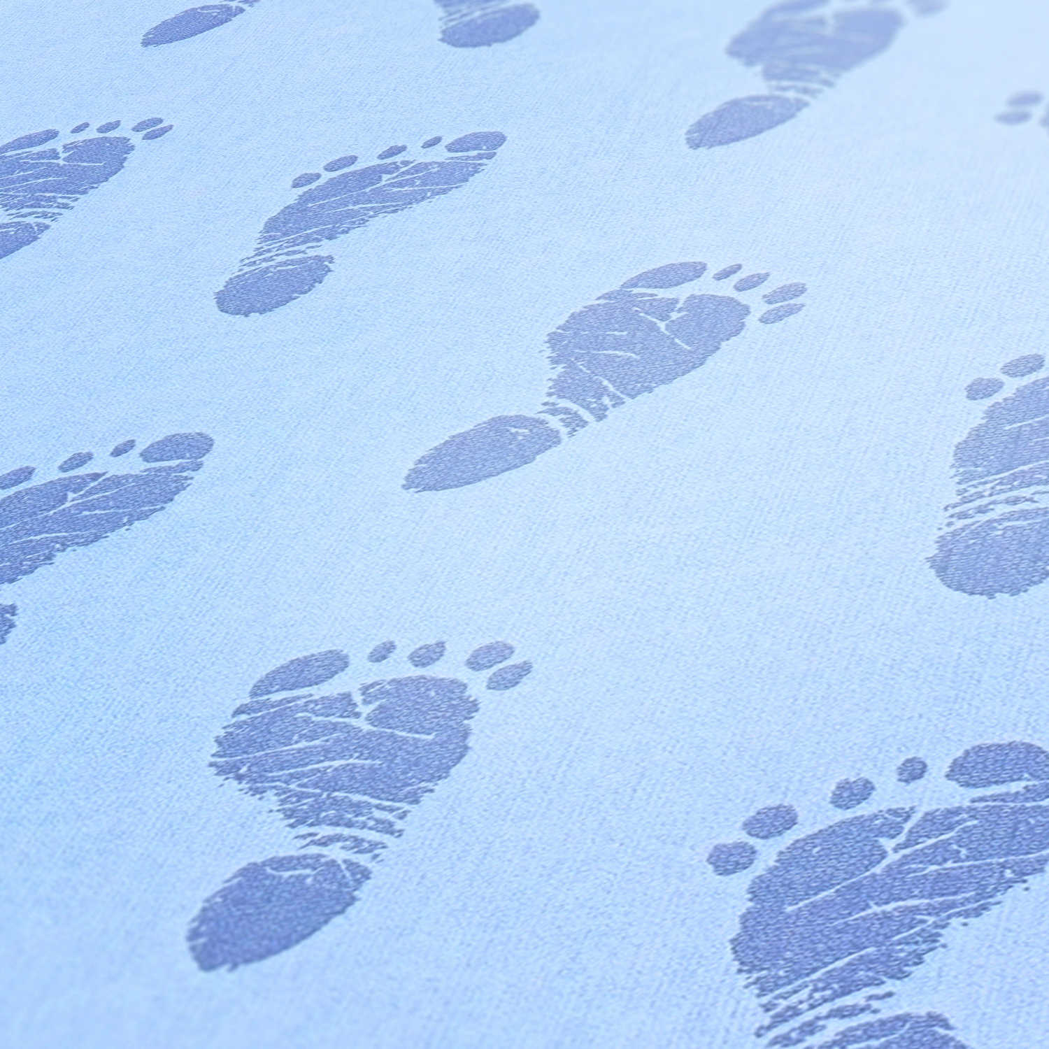 Tapete Kinderzimmer M1-No.146 Vliestapete Blau Metallic Fußabdruck