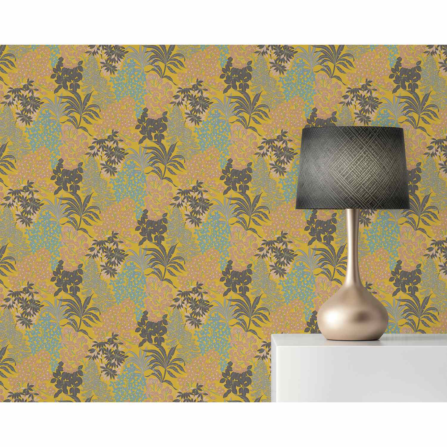 Tapete Mario Blumen M1-No.4370 Vlies Gelb Schwarz Floral Tadessi 10.05 x 0.53 m