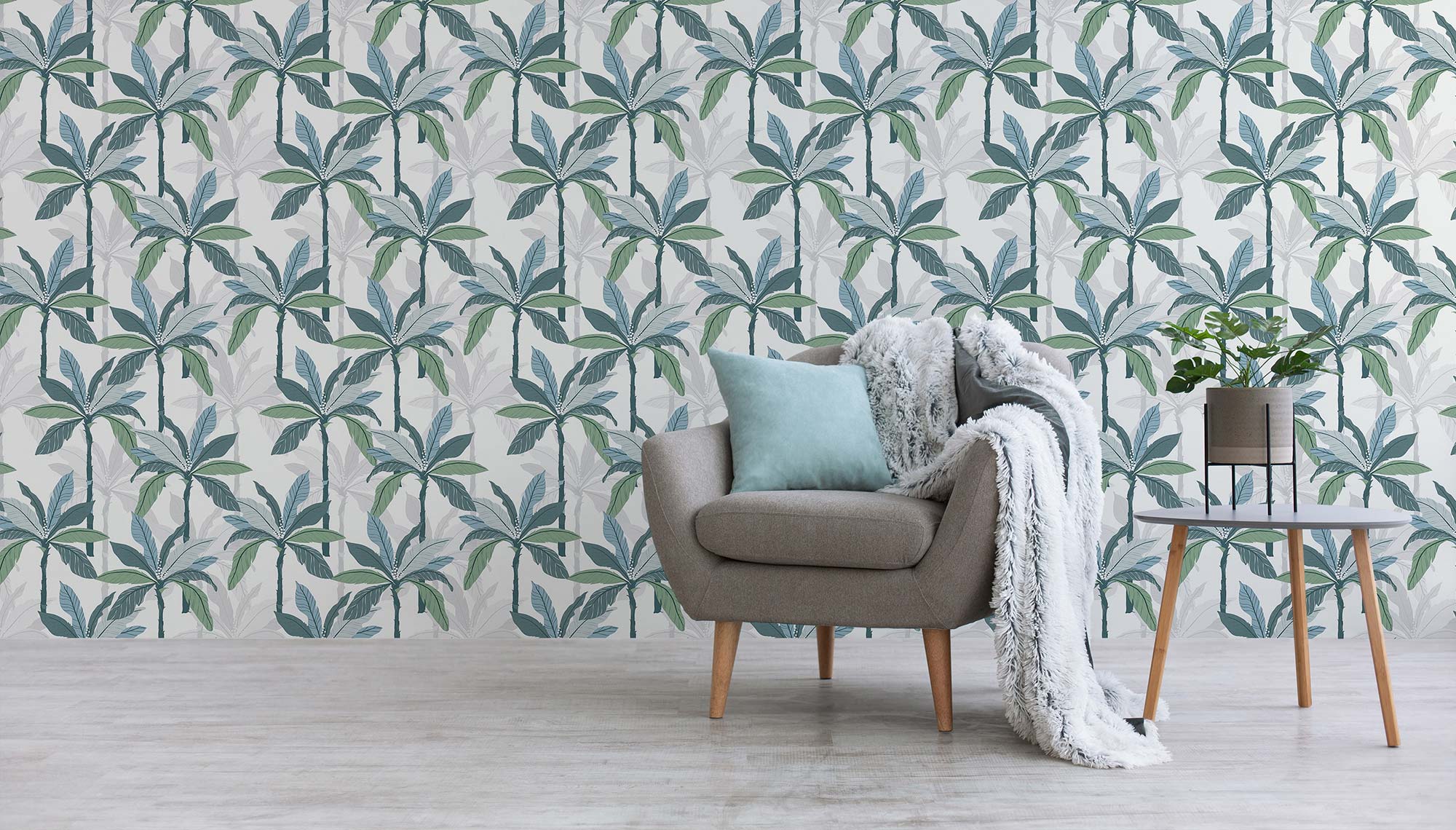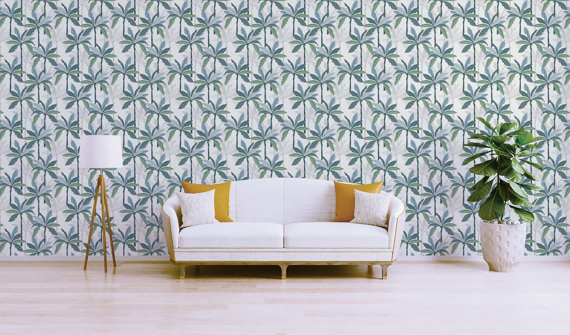Tapete Bäume Blätter Enrico M1-No.1461 Vliestapete Blau Grün Palmen