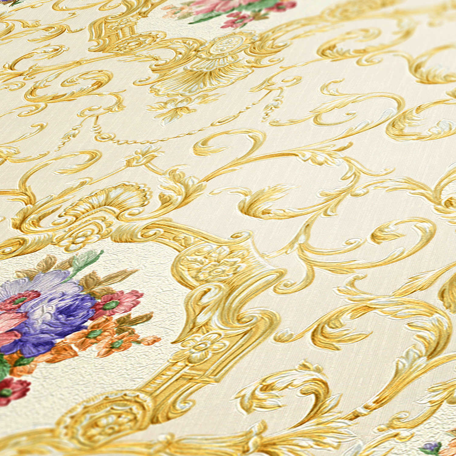 Tapete Barock Raffaele M1-No.2479 Vliestapete Gold Rosa Ornament Klassik Blumen