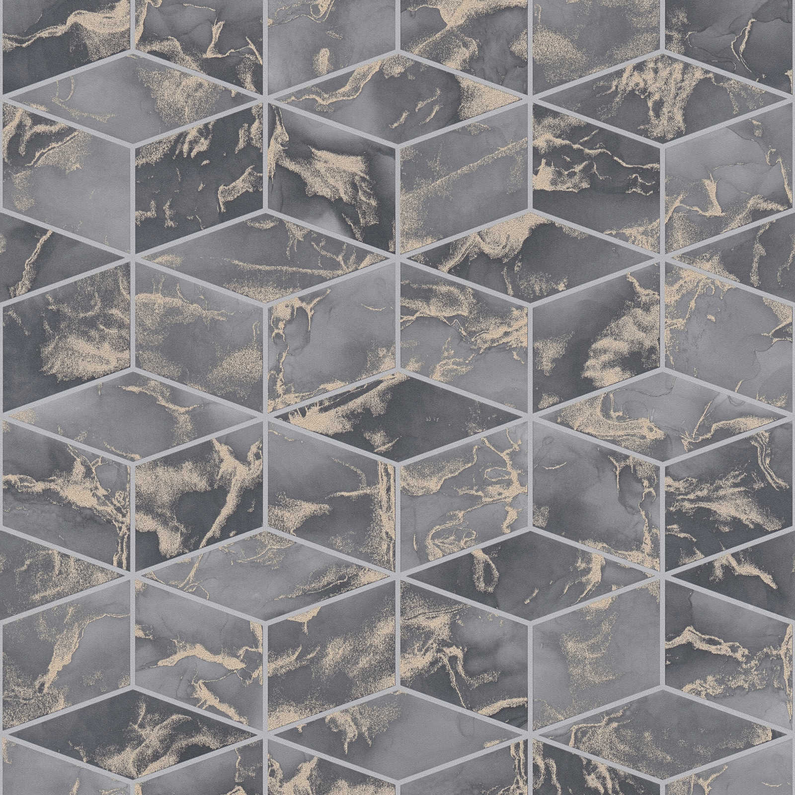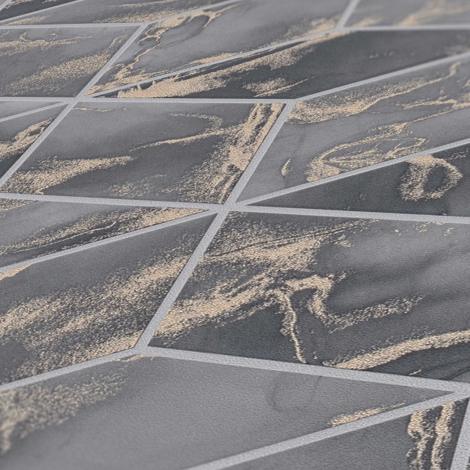 Tapete Grafik Domenico M1-No.619 | Vliestapete | Grau | Gold | Geometrische Tapete