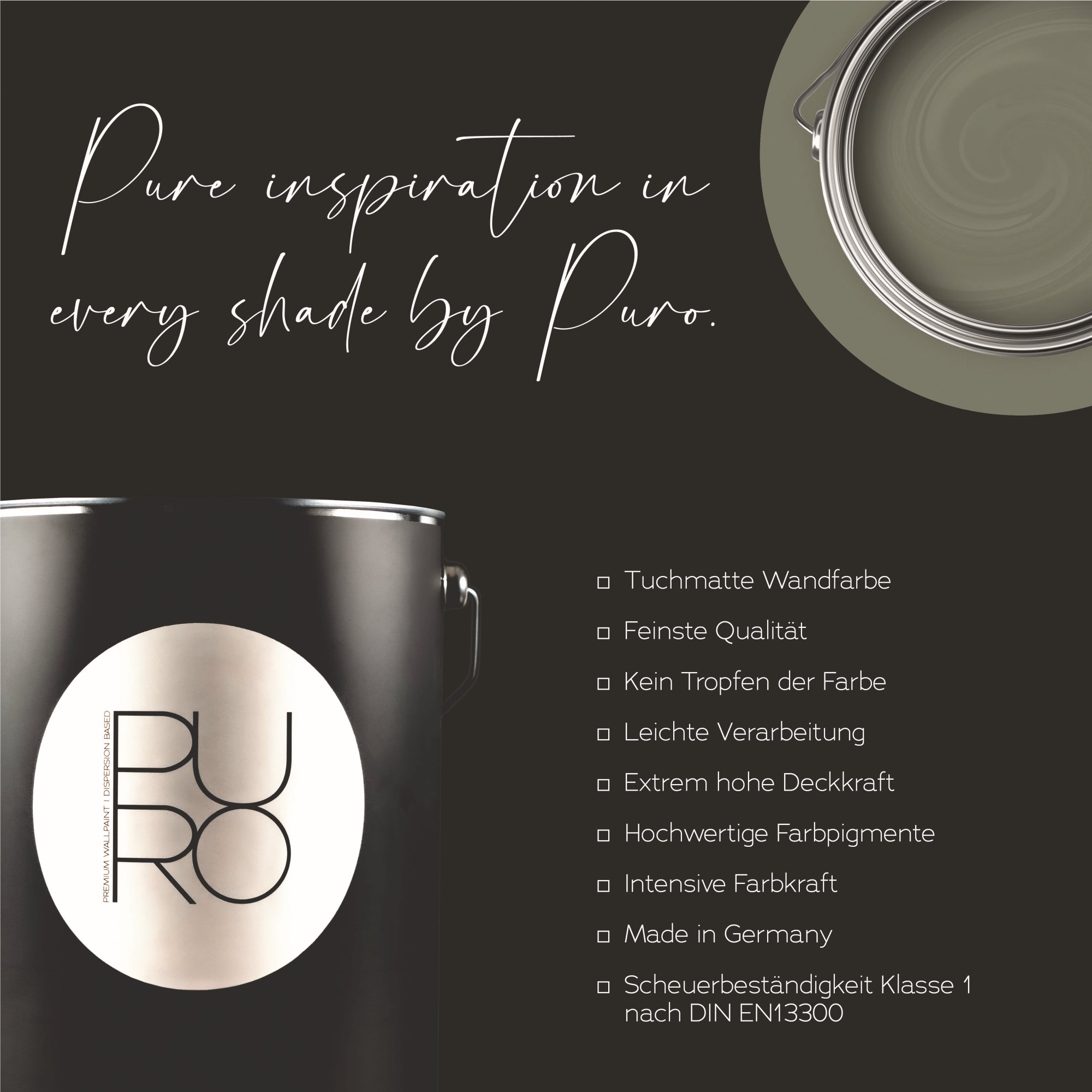 Entdecke die faszinierende Welt von Puro - die Wandfarbe voller Eleganz und Luxus. Eine exklusive Farbreihe, die speziell entwickelt wurde um Deine Wände mit einem einzigartigen seidenmatten Glanz zu tauchen und gleichzeitig eine atemberaubende Atmosphäre zu schaffen. Dank der Verwendung hochwertiger Farbpigmente werden Deine Wände glatt und strapazierfähig. Du erhältst ein schönes Finish für die perfekte Optik. Mit einer breiten Palette an sowohl trendigen als auch zeitlosen Farbtönen findest Du bei PURO den idealen Farbton, der zu Dir und Deinem Zuhause passt.