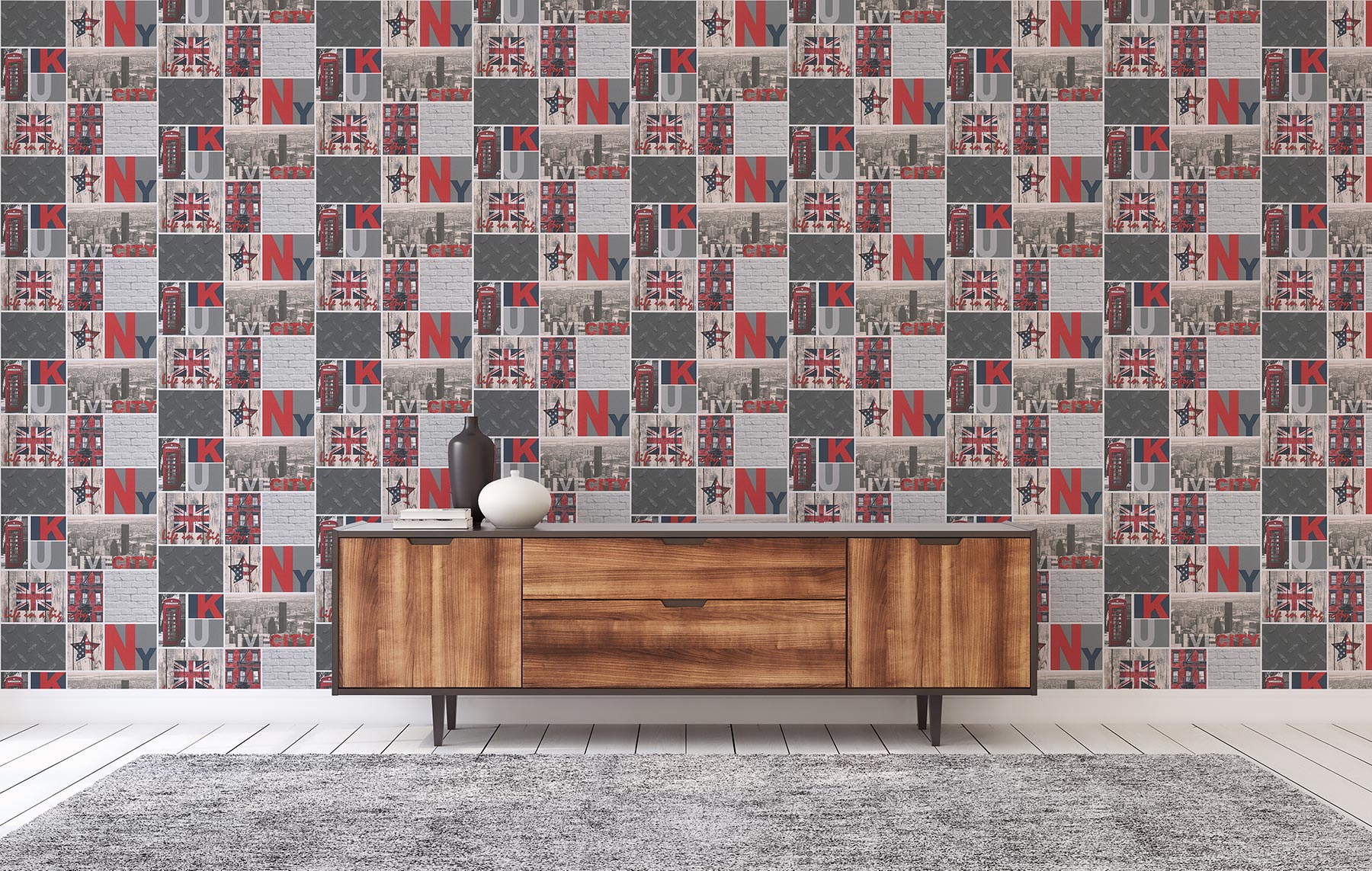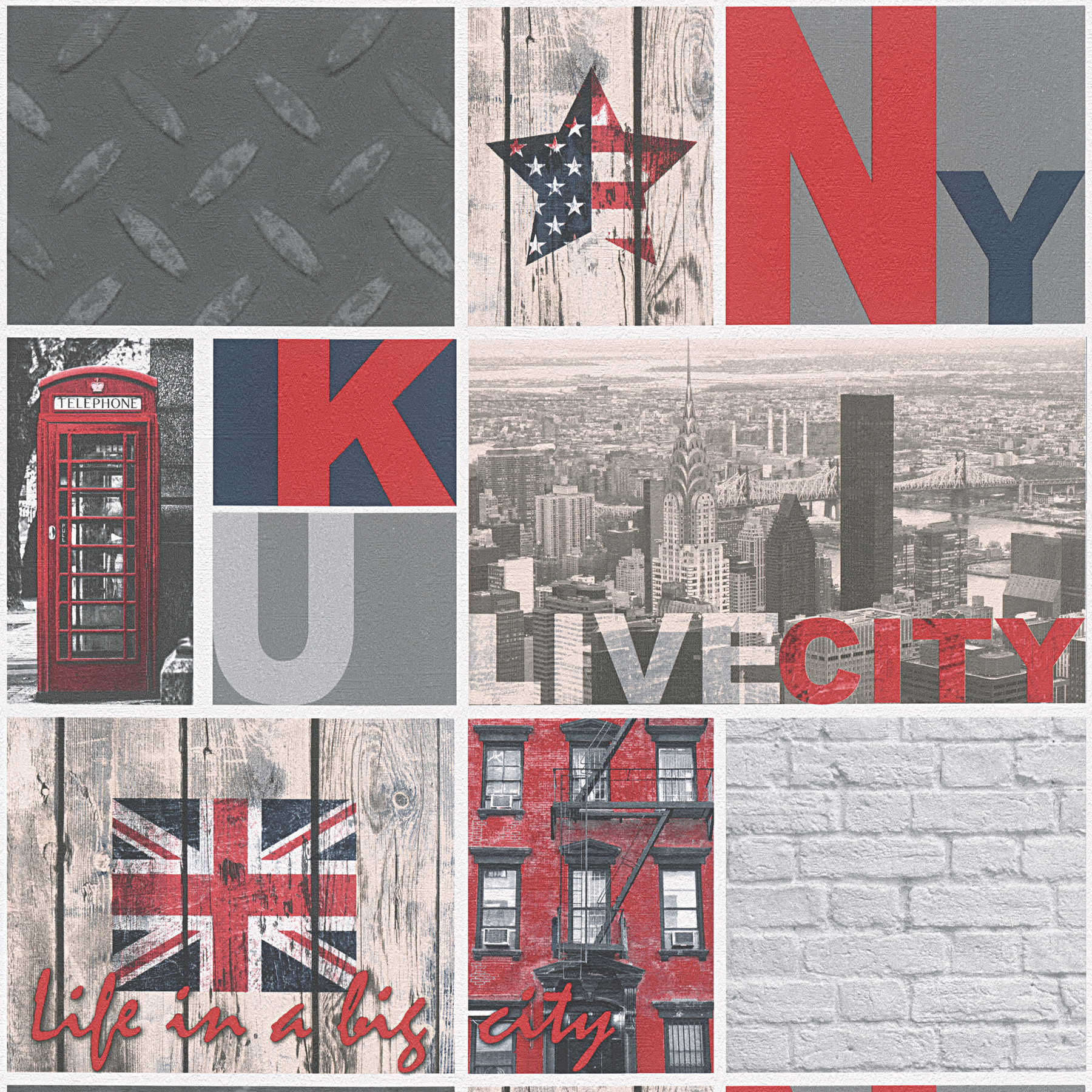Tapete Kinderzimmer M1-No.3770 Papiertapete Rot Tapete Jung New York